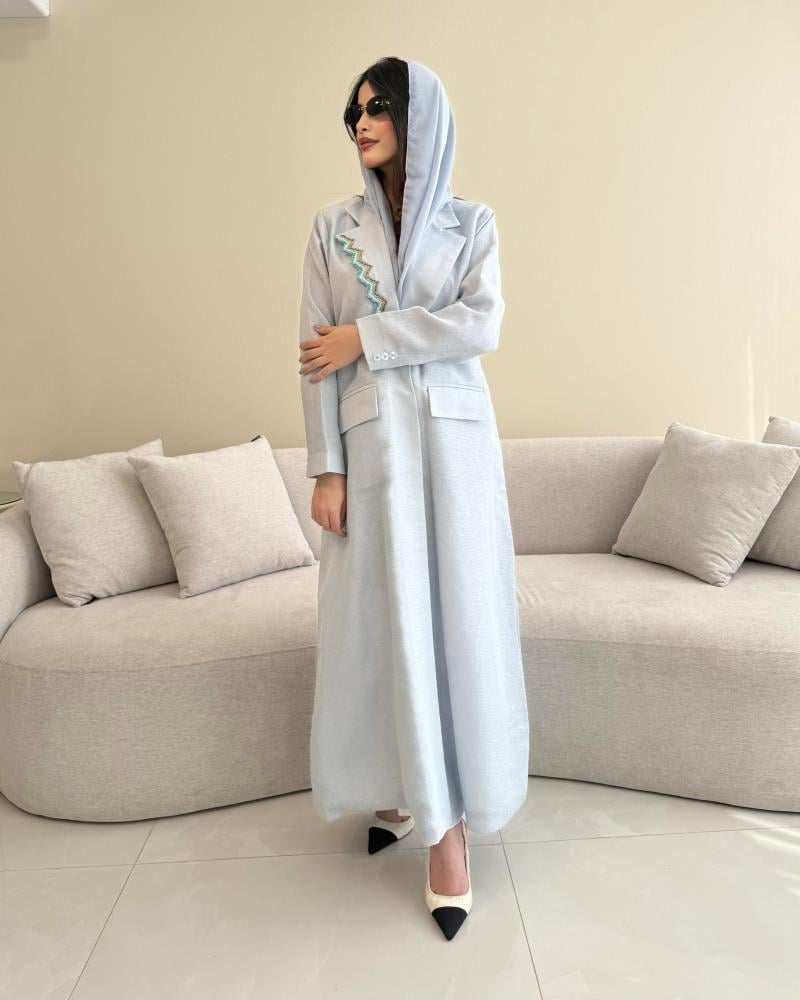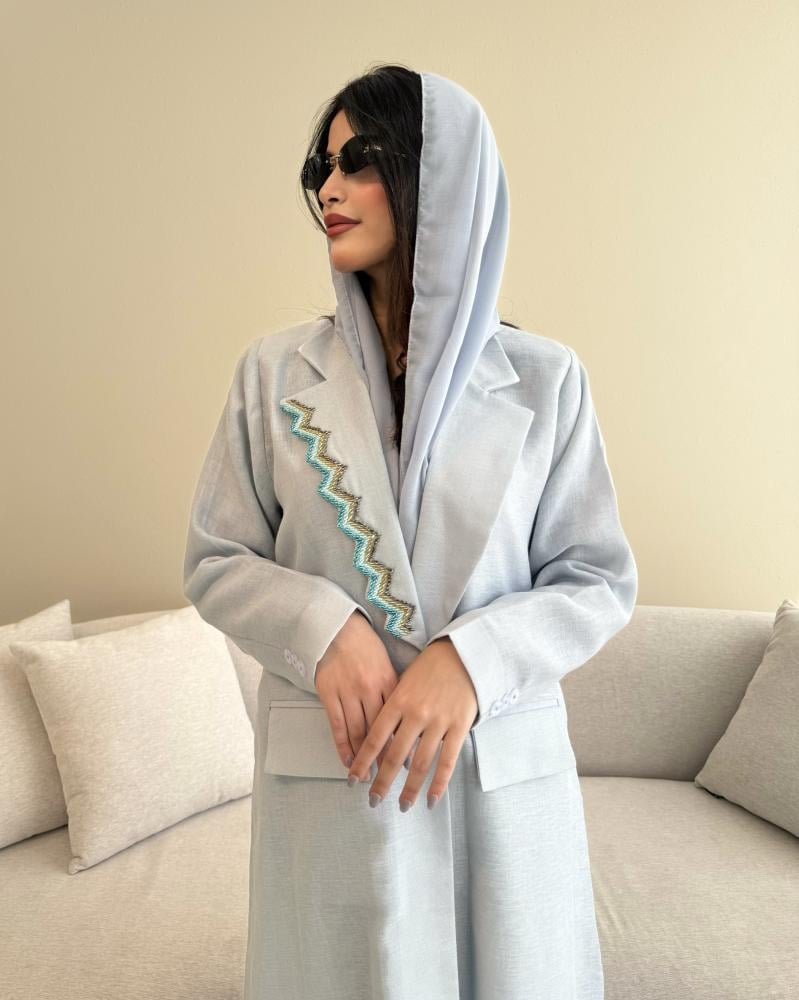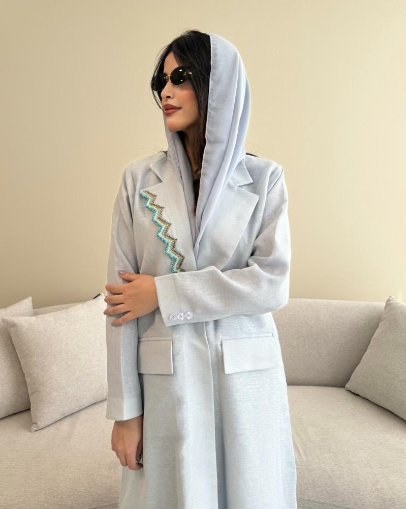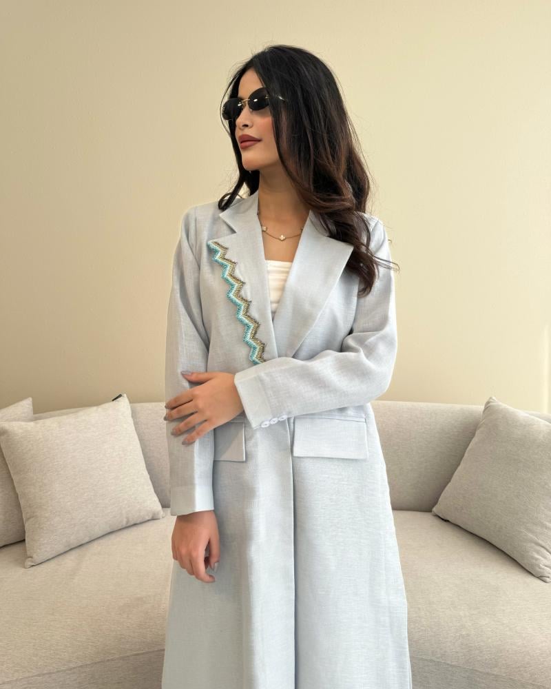 Z315 / قماش لينن سماوي قصه بليزر مبطنة كامل مع جيوب