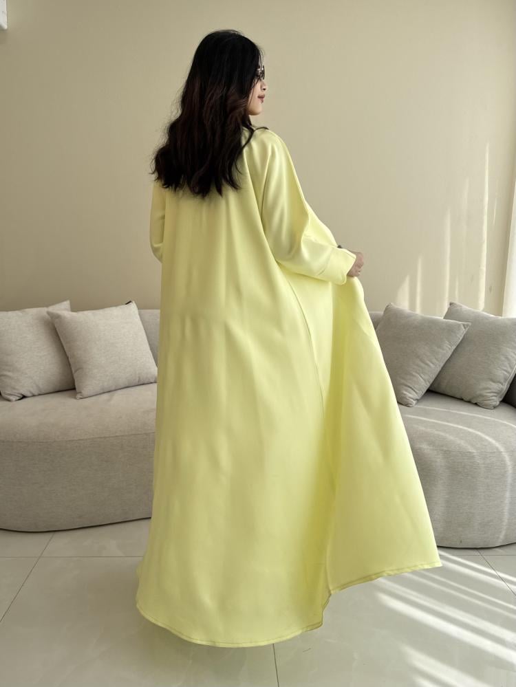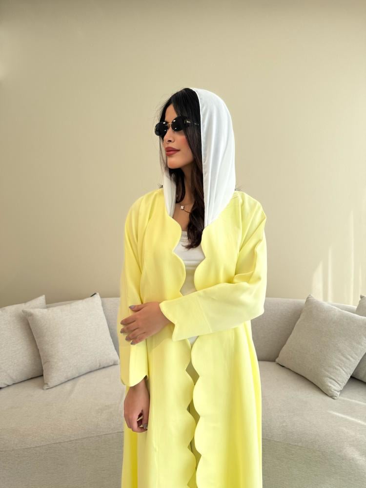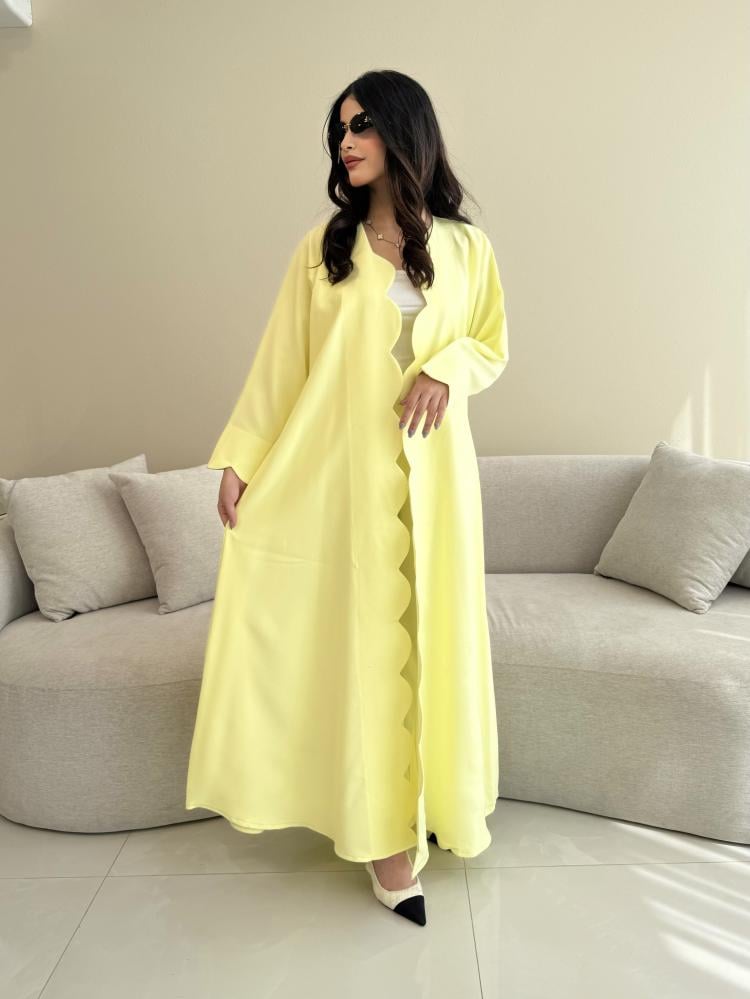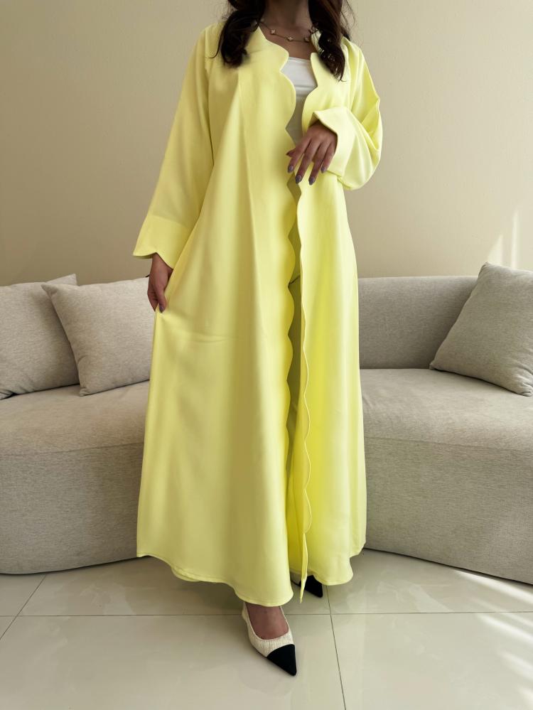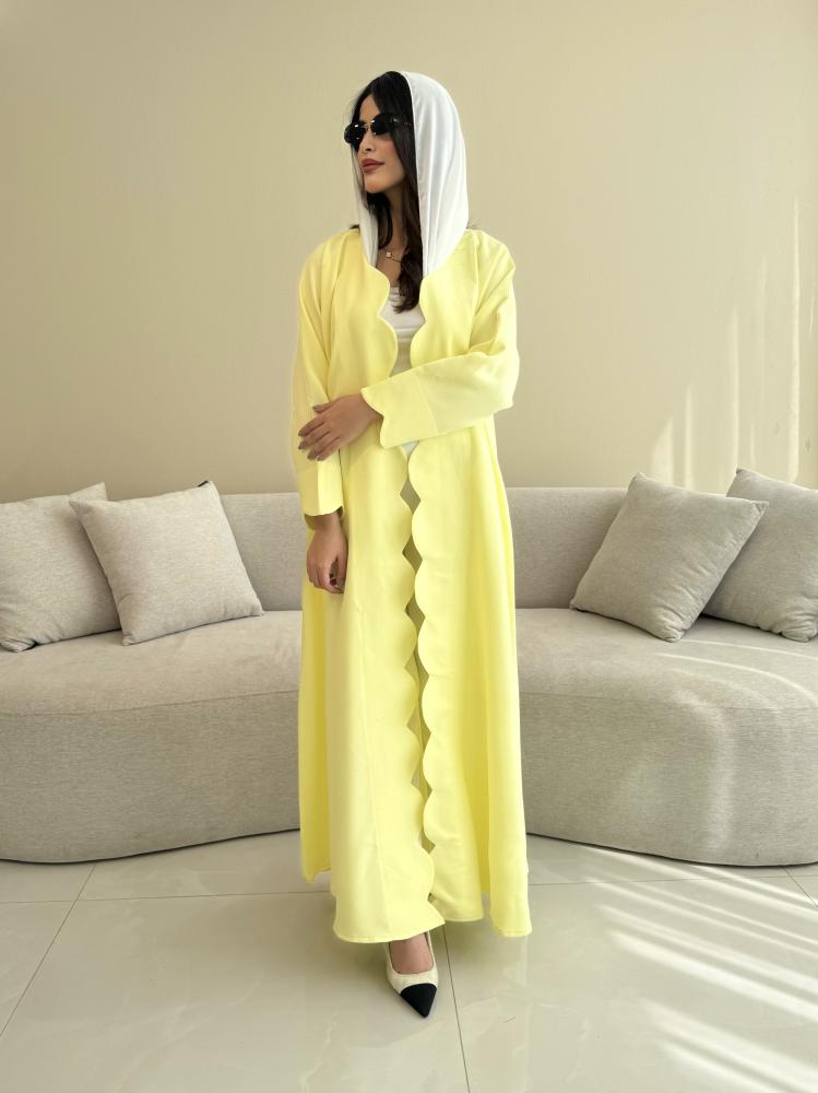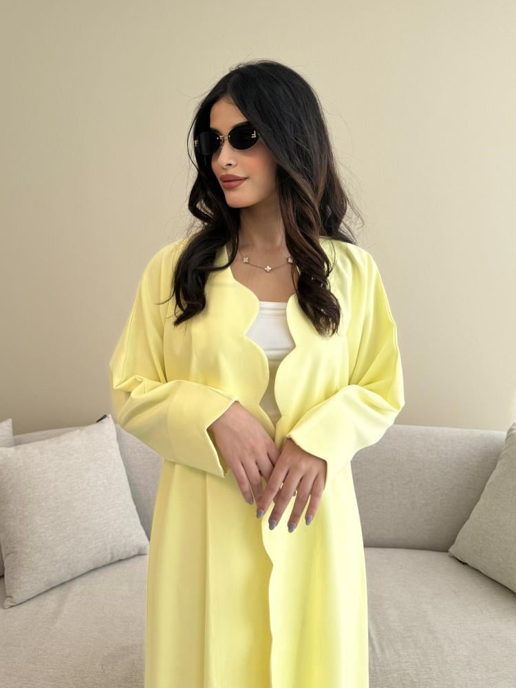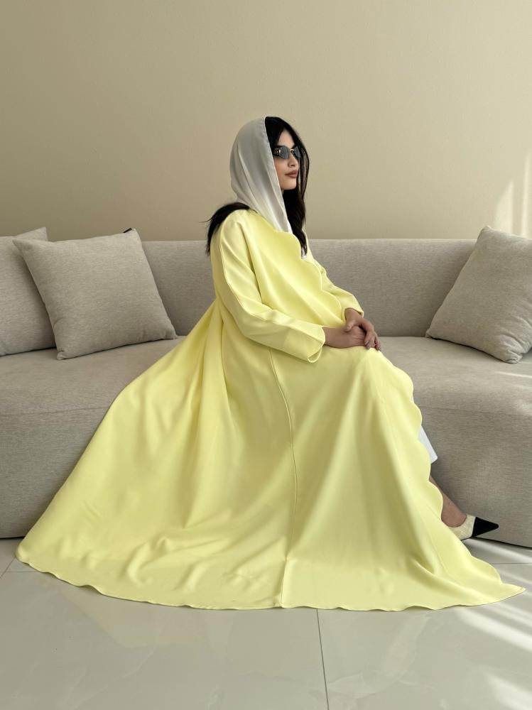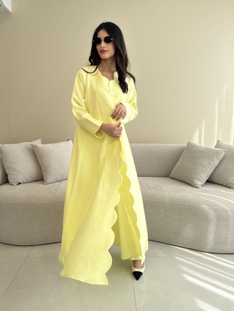 Z311 / قماش كريب صيفي لون اصفر ليموني وقصة دوائر بالاطراف