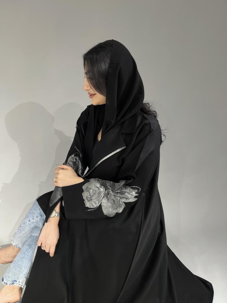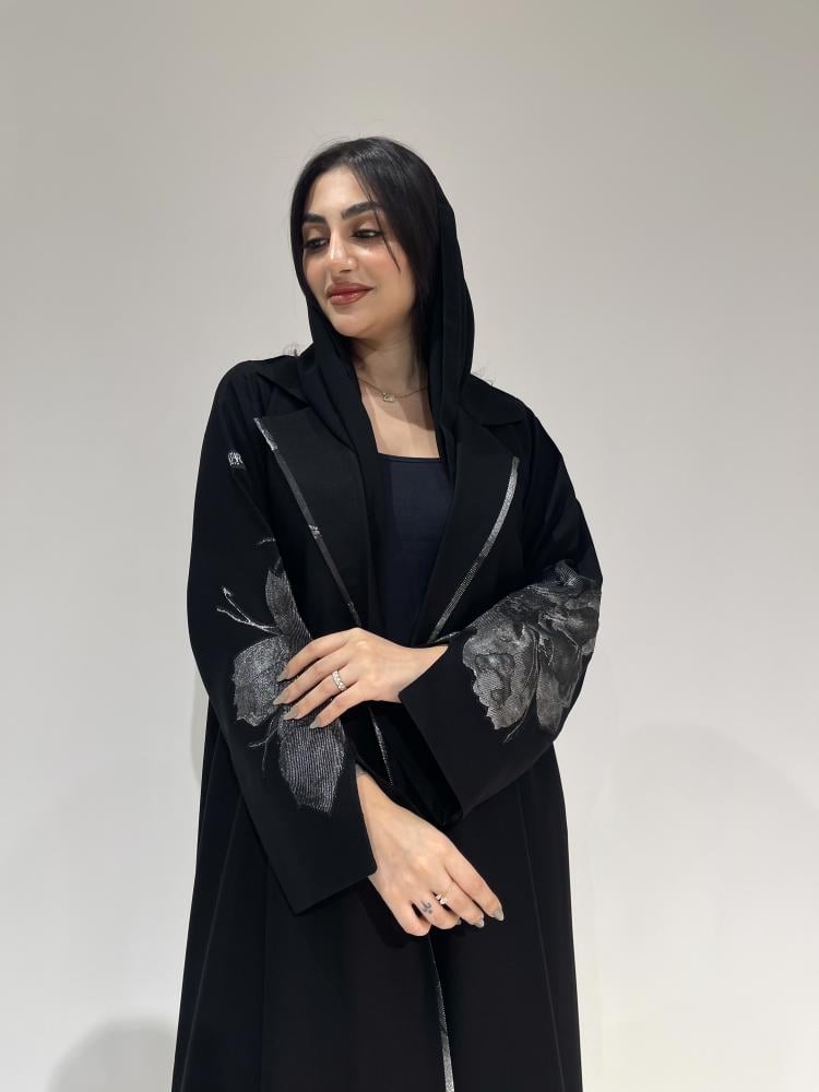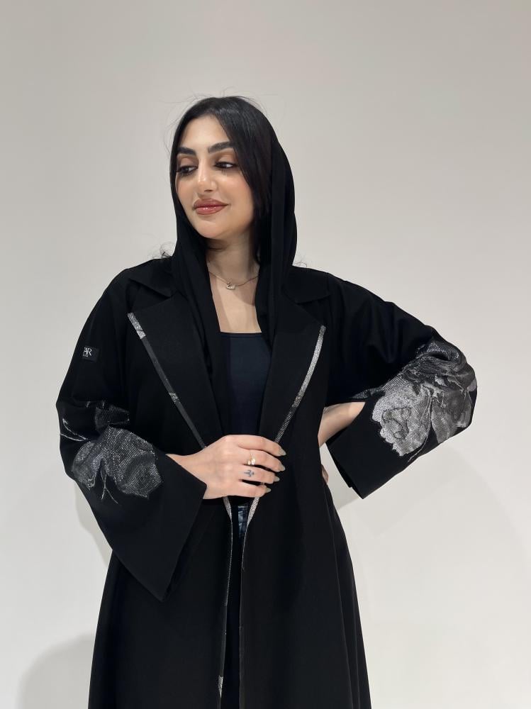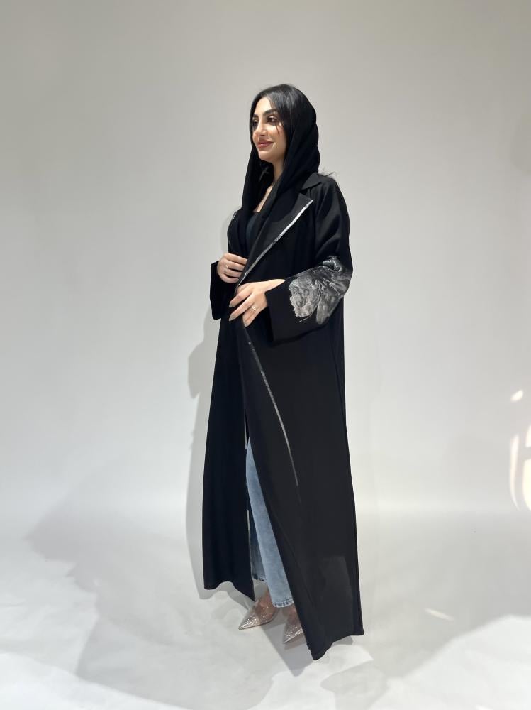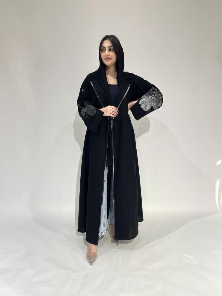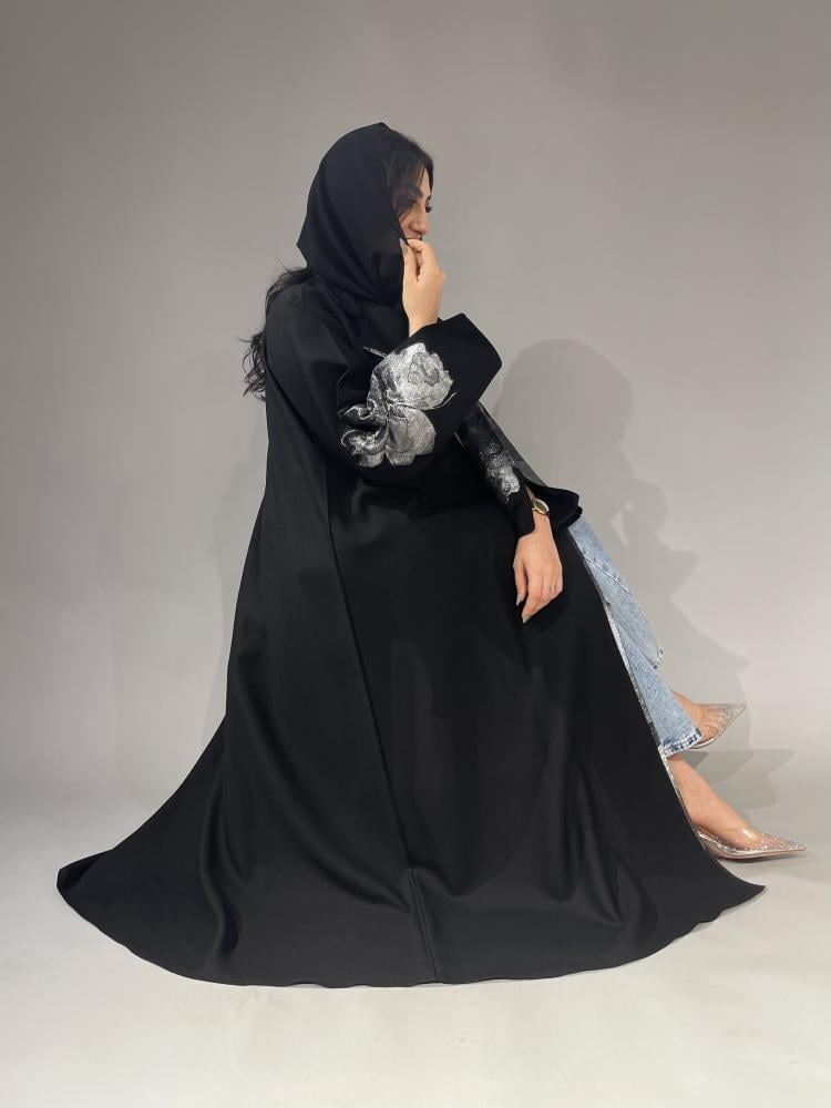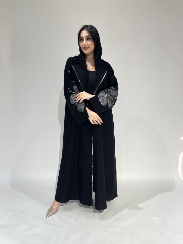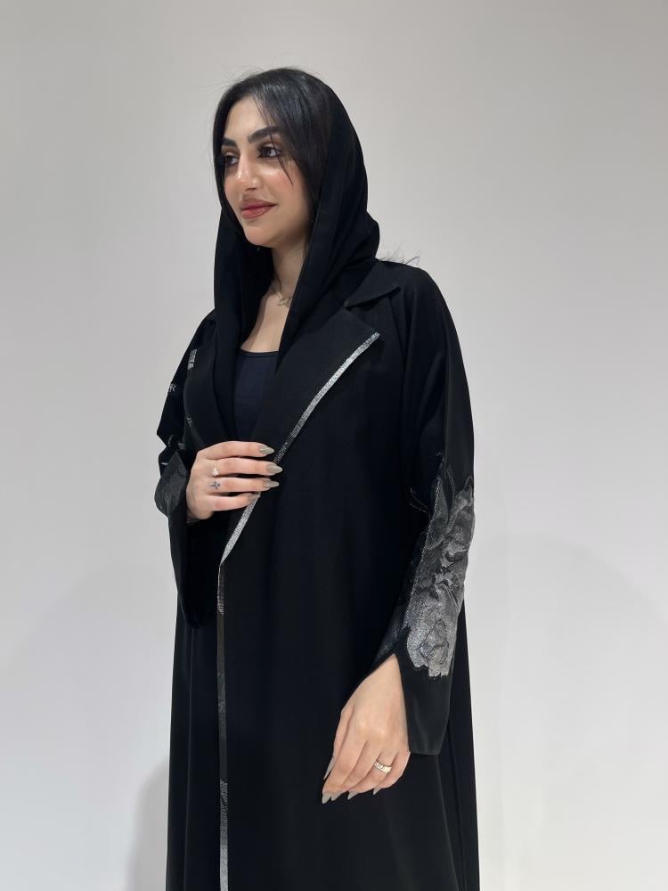 Z300 / قماش كريب وتطريز كمبيوتر بالخلف خيوط زري فضي واسود