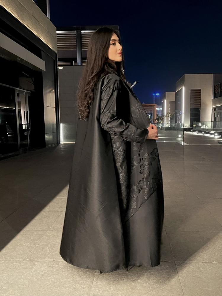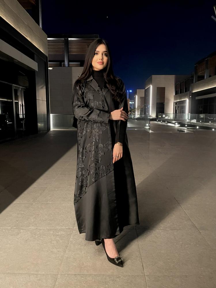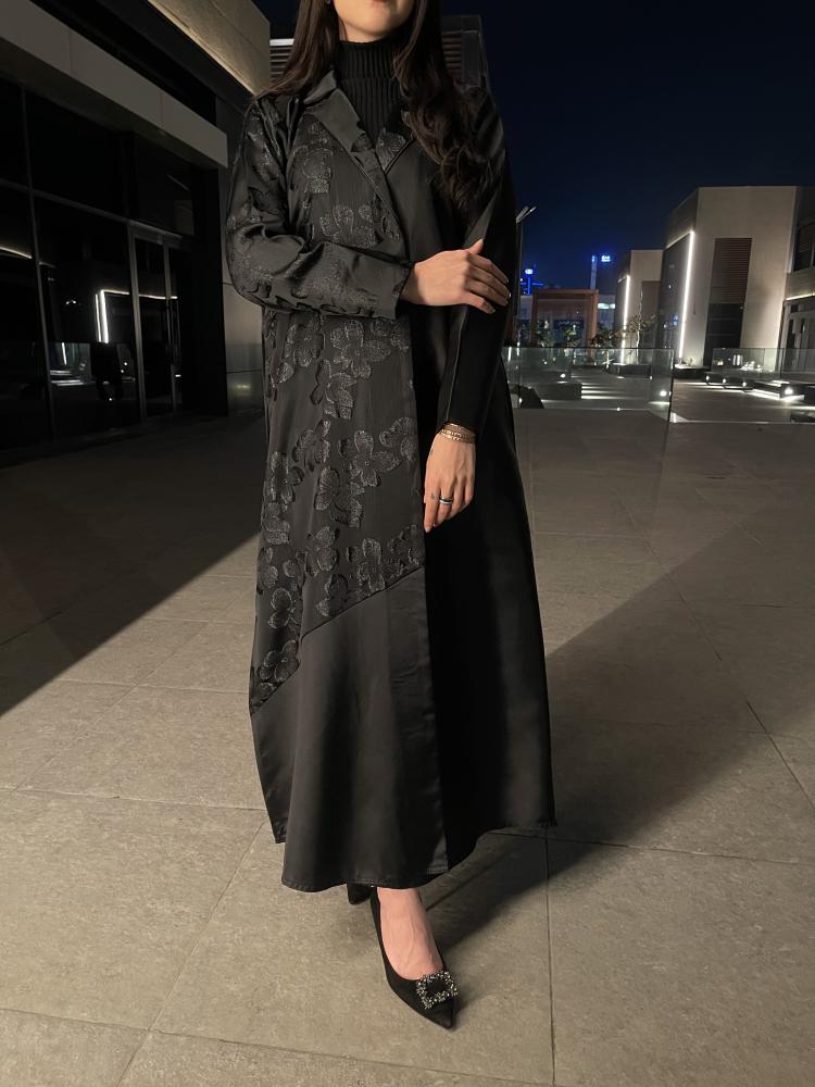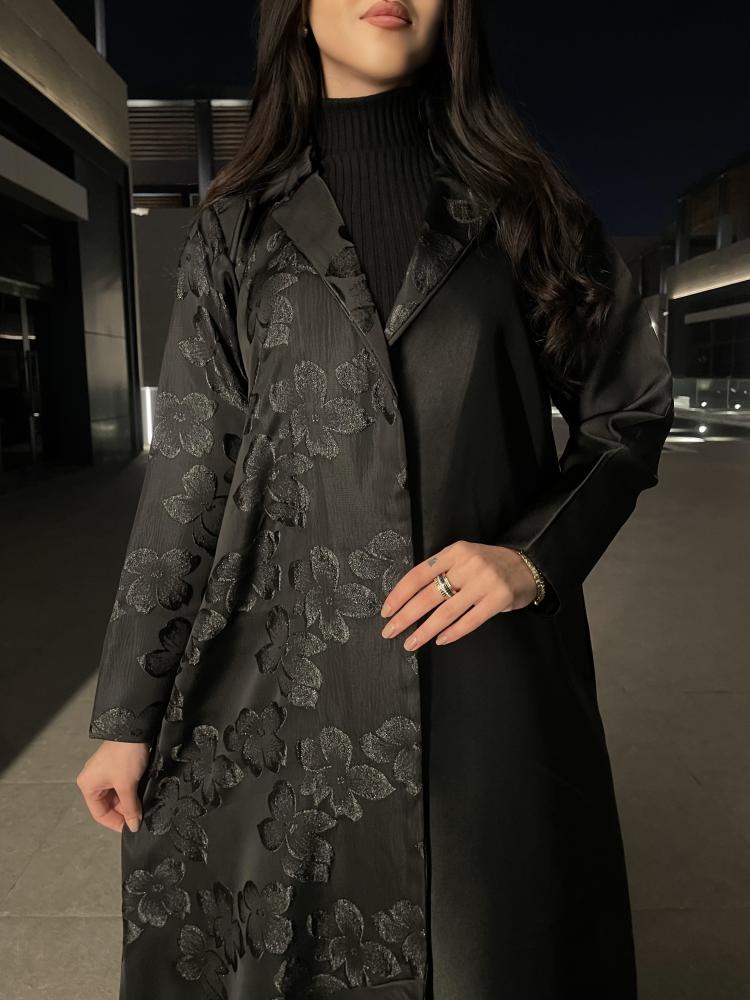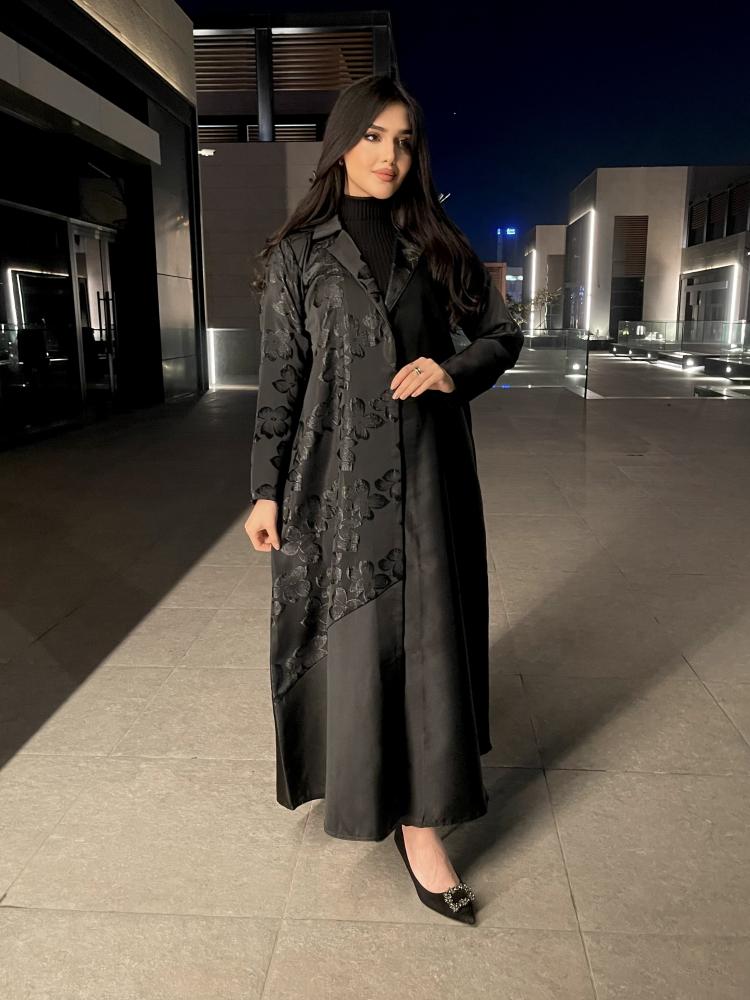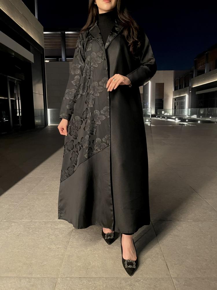 Z227 / قماش مخمل اسود مع ياقه ورسم يدوي