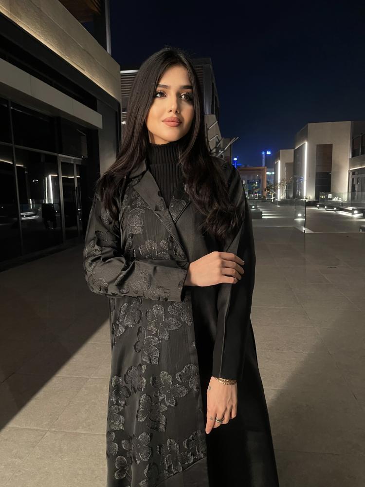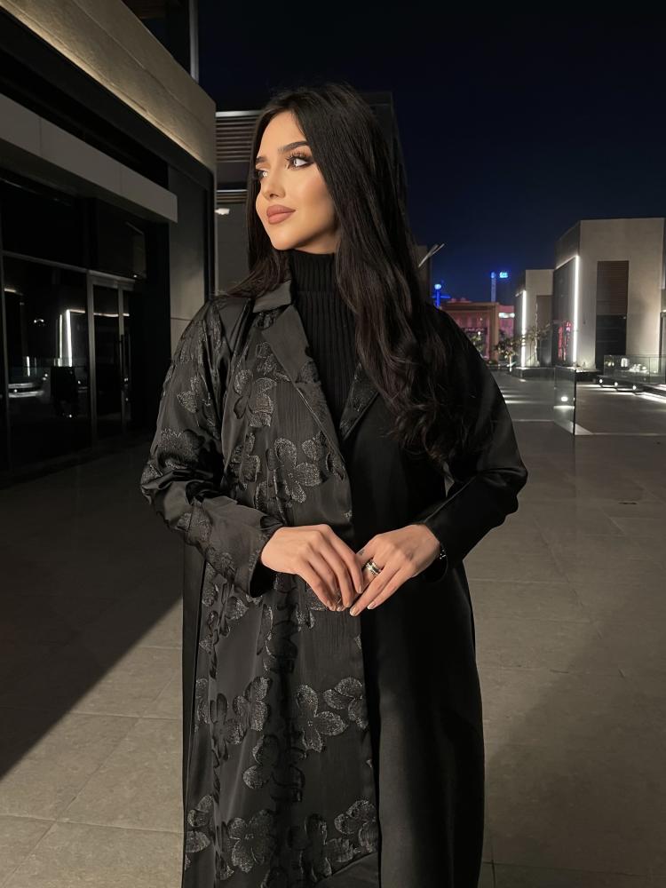 Z220 / قماش مخمل اسود وكسرات كريب مع كلفه ورد