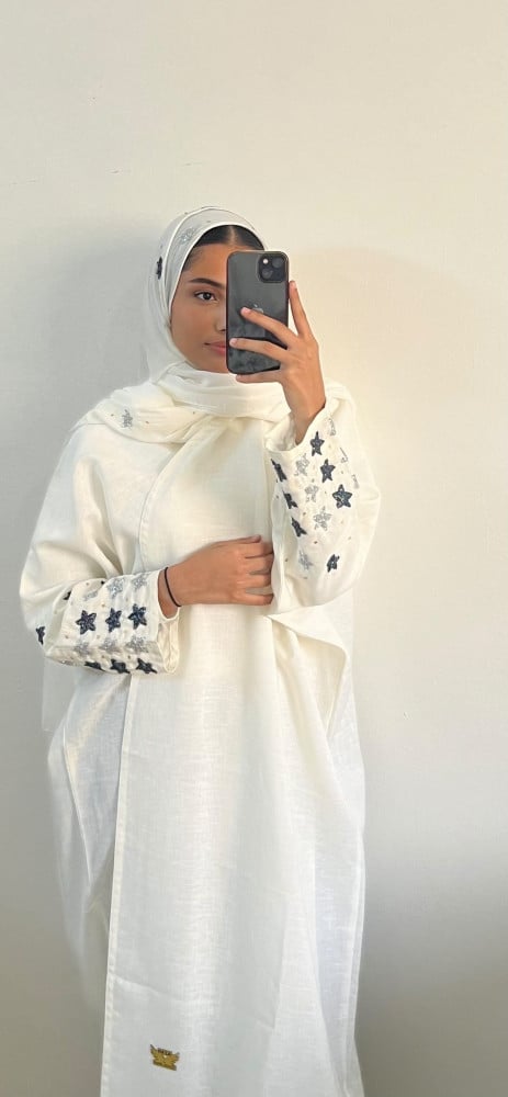 Z323 / قماش كريب كوبرا وتطريز ابيض متعرج بالاطراف