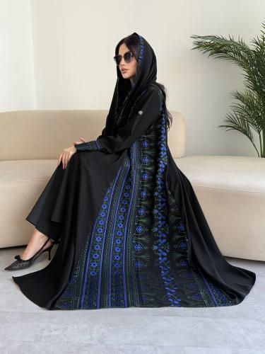 Z312 / قماش لينن كحلي وتطريز كمبيوتر كامل العباية