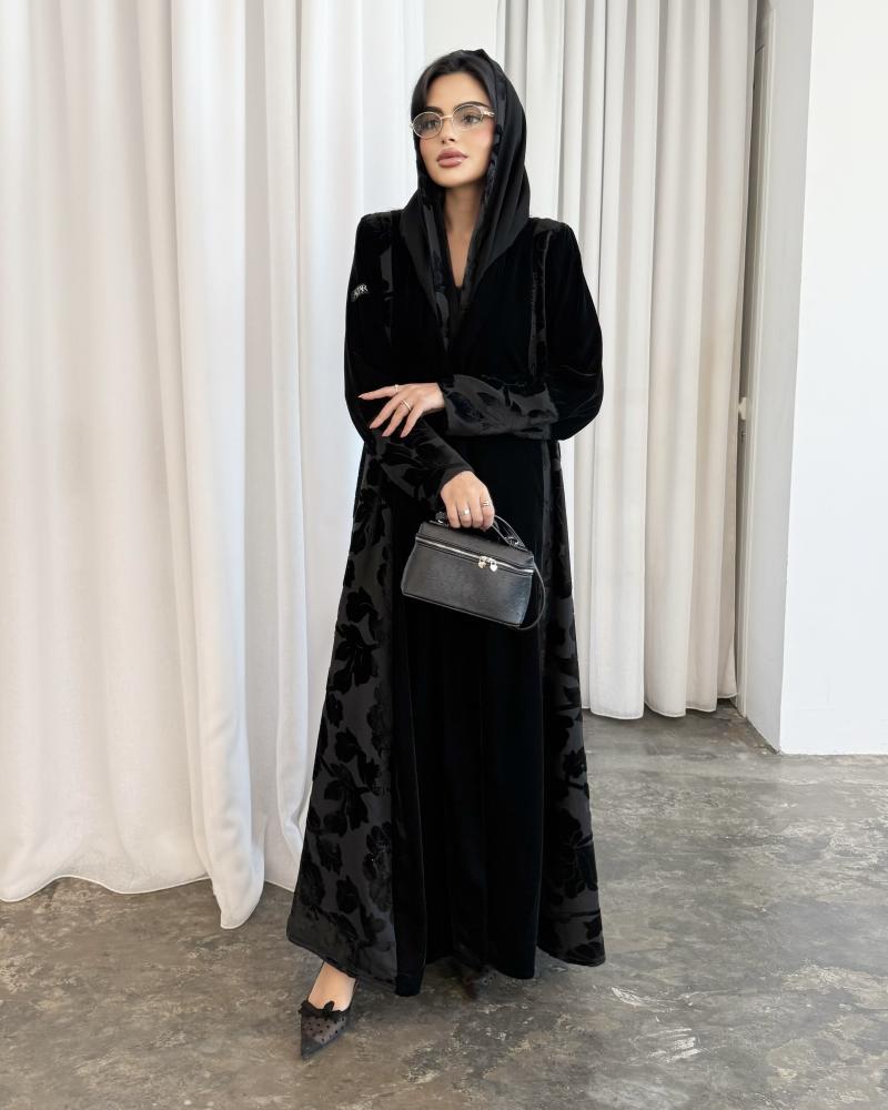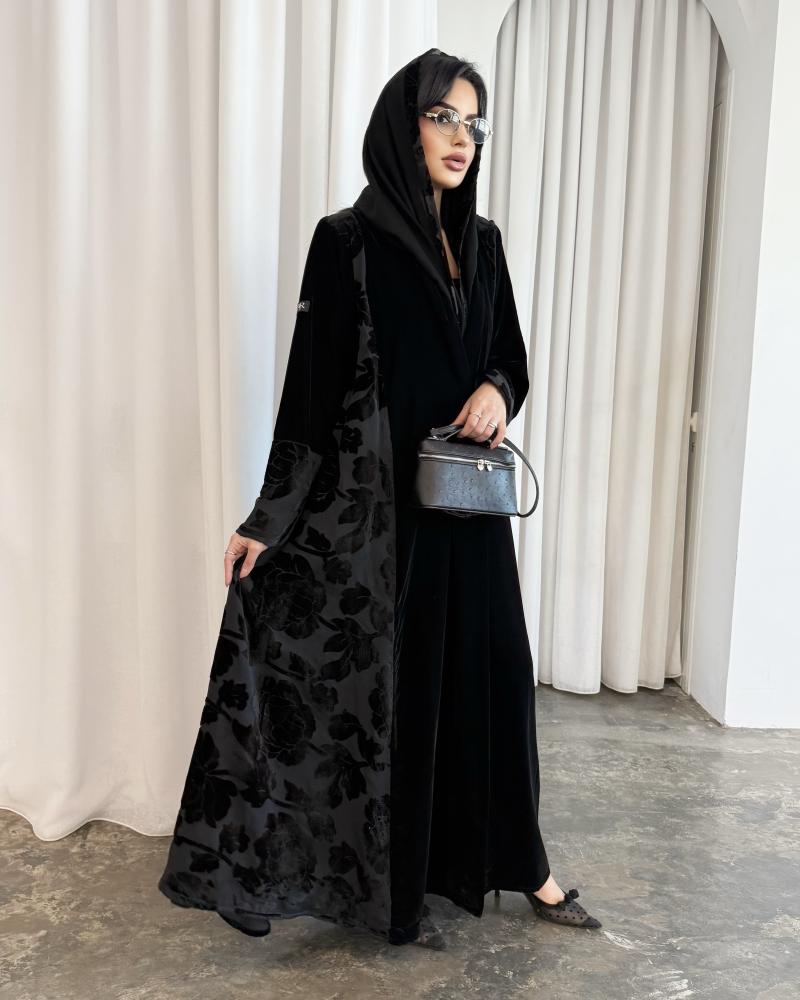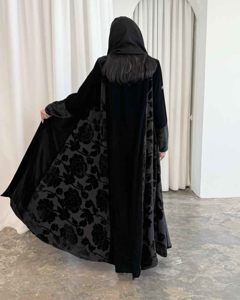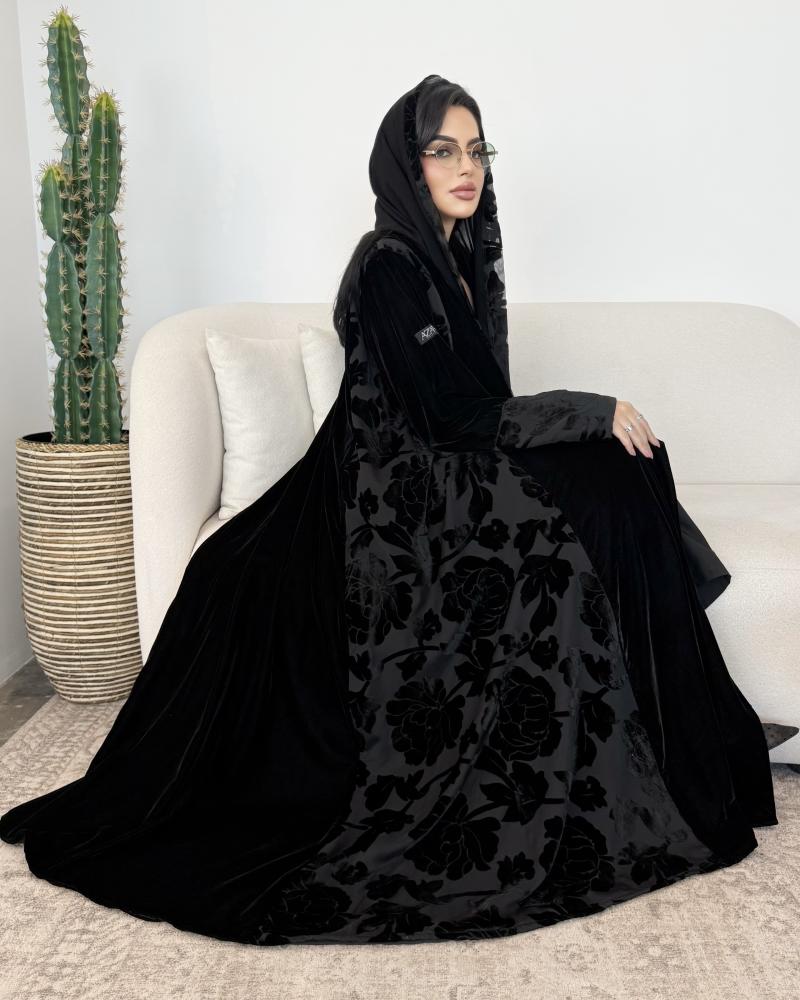 Z226 / قماش مخمل اسود وتطريز كمبيوتر بالخلف
