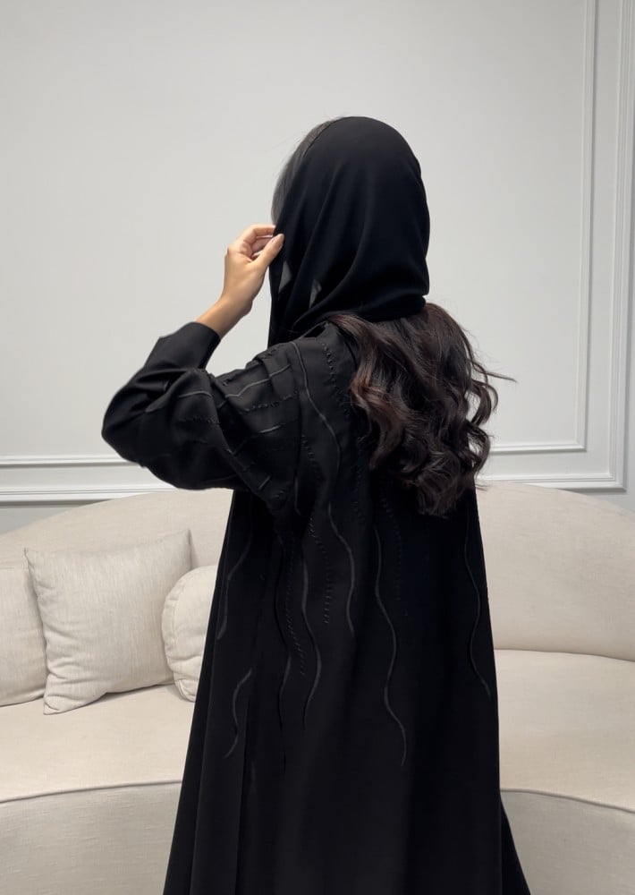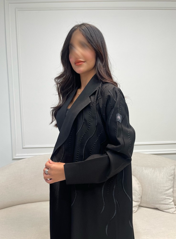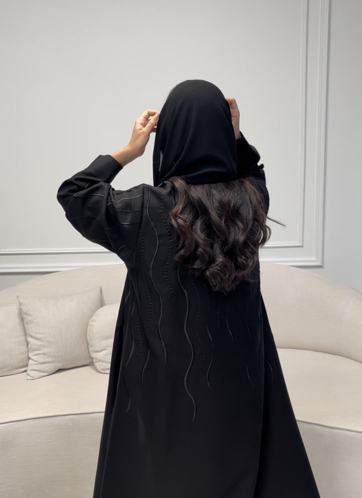 Z323 / قماش كريب كوبرا وتطريز ابيض متعرج بالاطراف