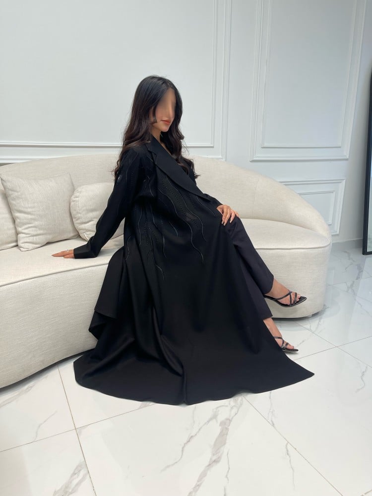 Z298 / قماش كريب كوبرا مع تطريز كمبيوتر بالجوانب وطرف الكم