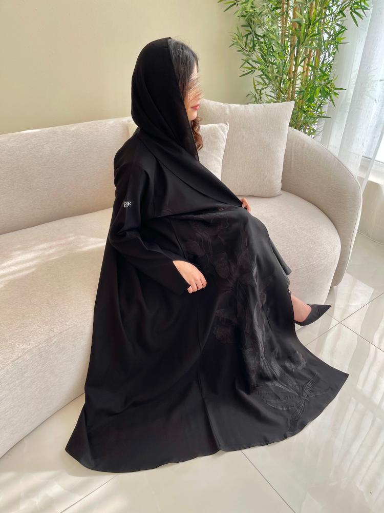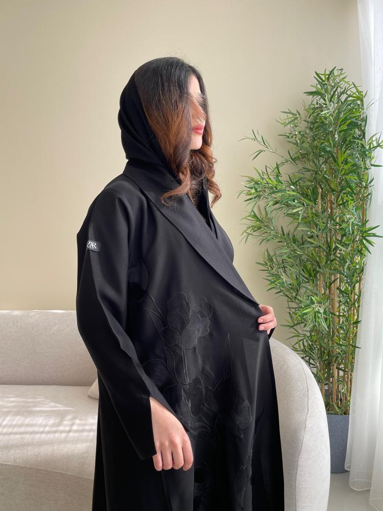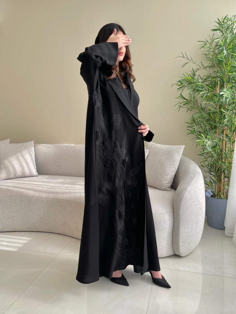 Z258 / قماش كريب مينيمات وتطريز كمبيوتر اسود عالجنب