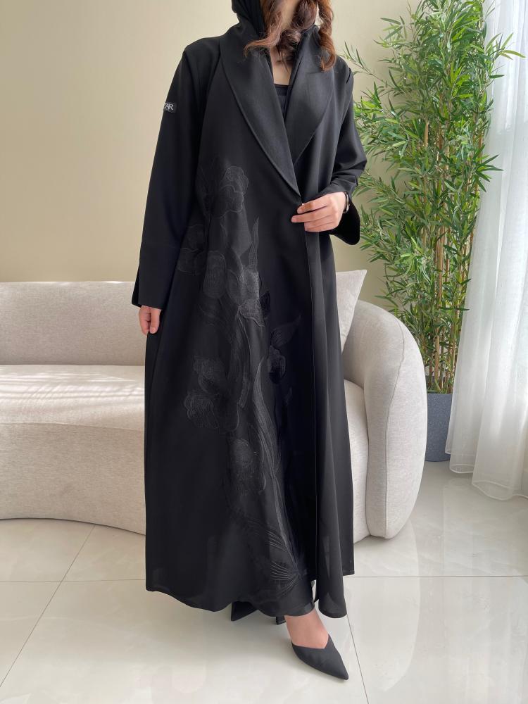 Z262 / قماش كريب كوبرا قصة جاكيت وتطريز اسود