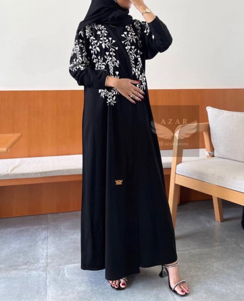 Z336 / قماش كريب كوبرا وتطريز اسود طرف الاكم وبالامام