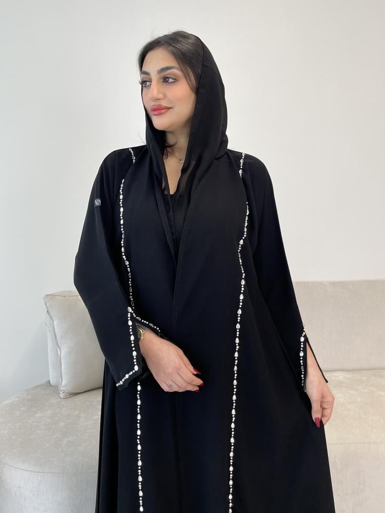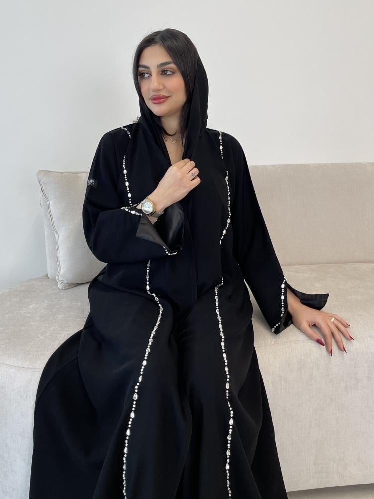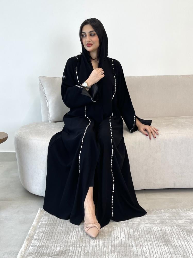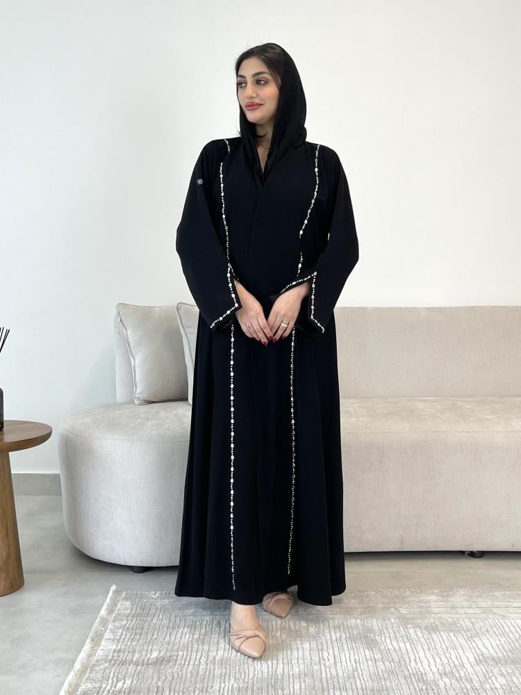 Z300 / قماش كريب وتطريز كمبيوتر بالخلف خيوط زري فضي واسود