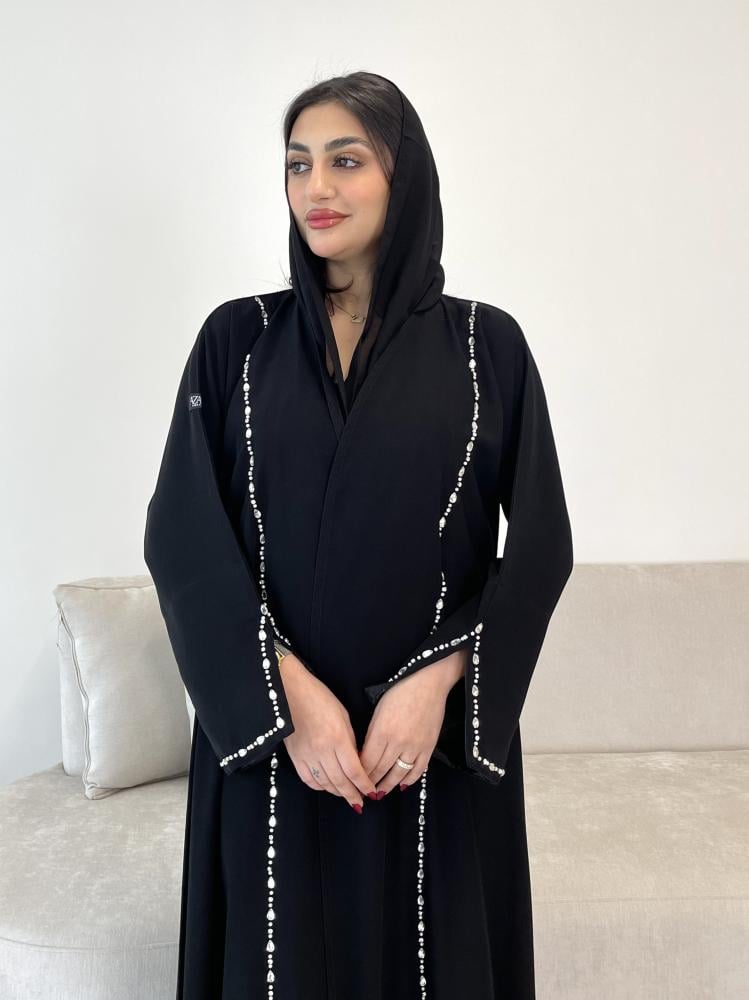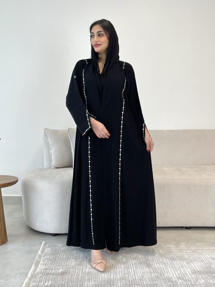 Z284 / قماش كريب مينيمات مع جاكار وكسرات اسفل العباية