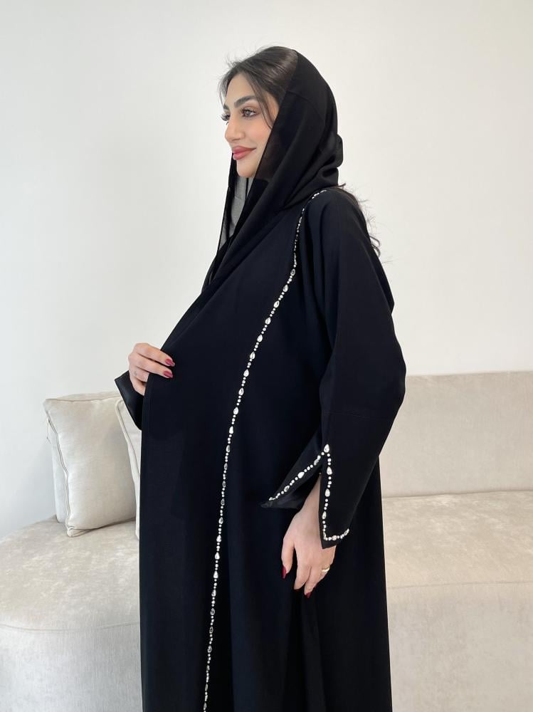 Z246 / قماش كريب كوبرا مع شك كرستال بالامام وطرف الكم