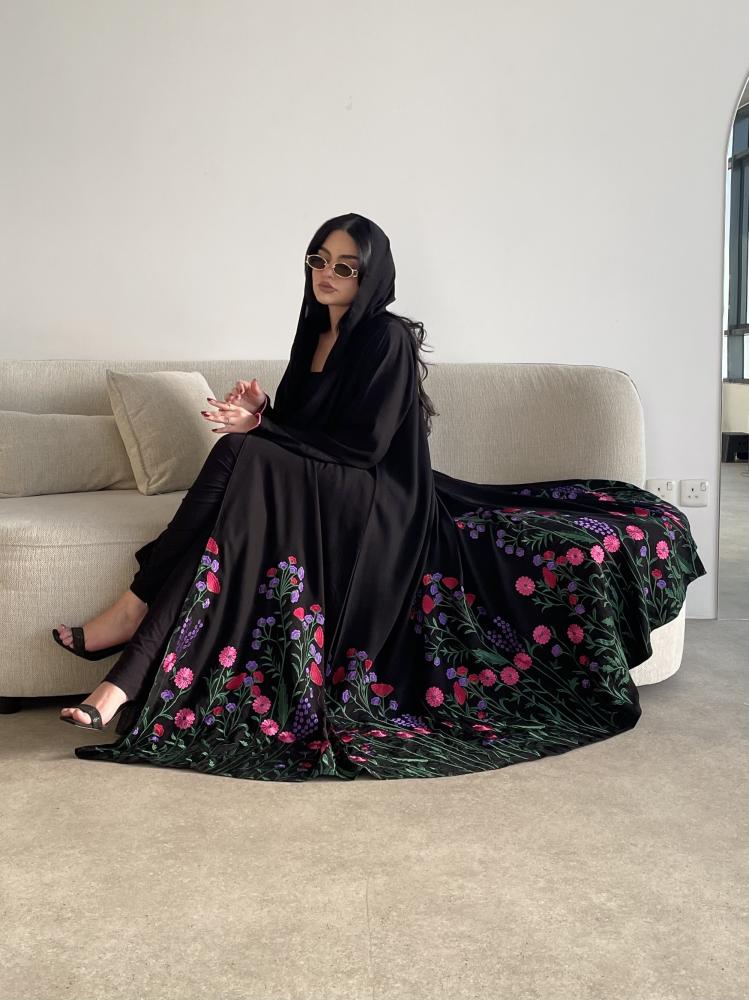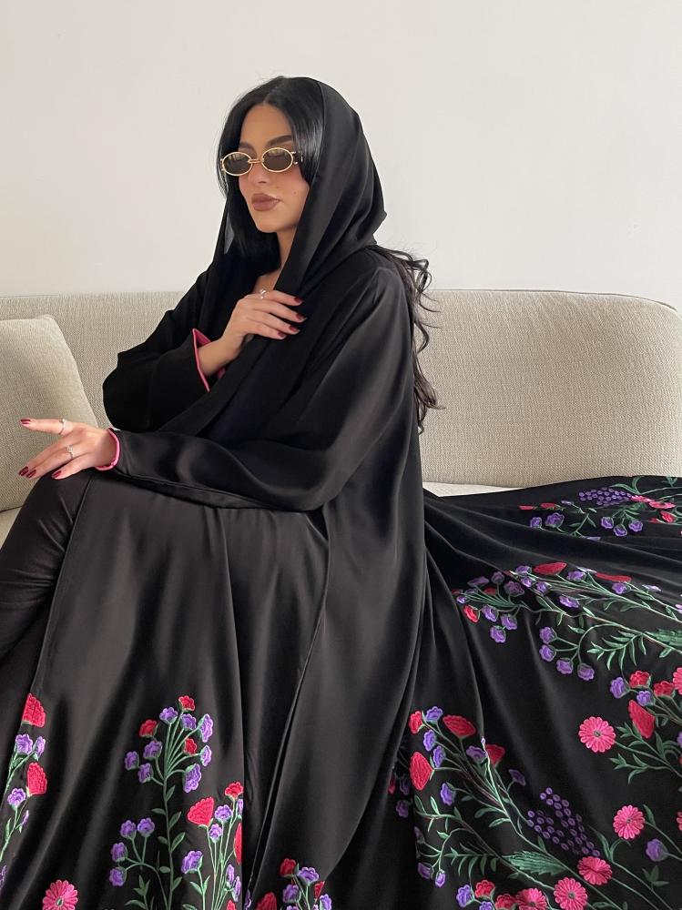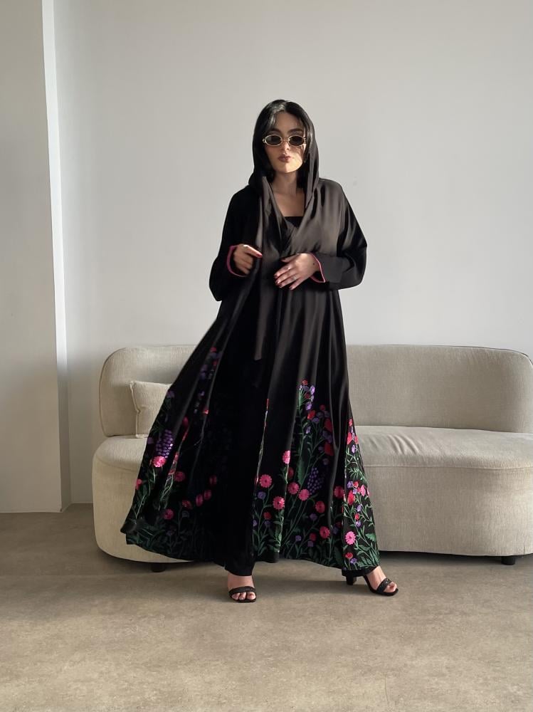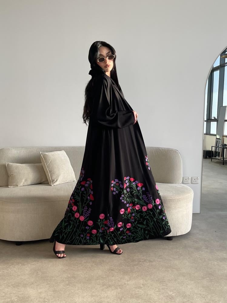 Z226 / قماش مخمل اسود وتطريز كمبيوتر بالخلف