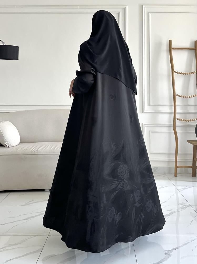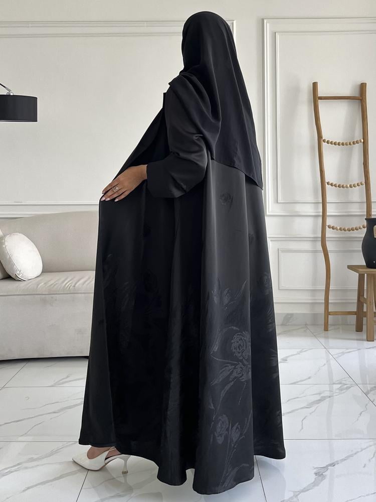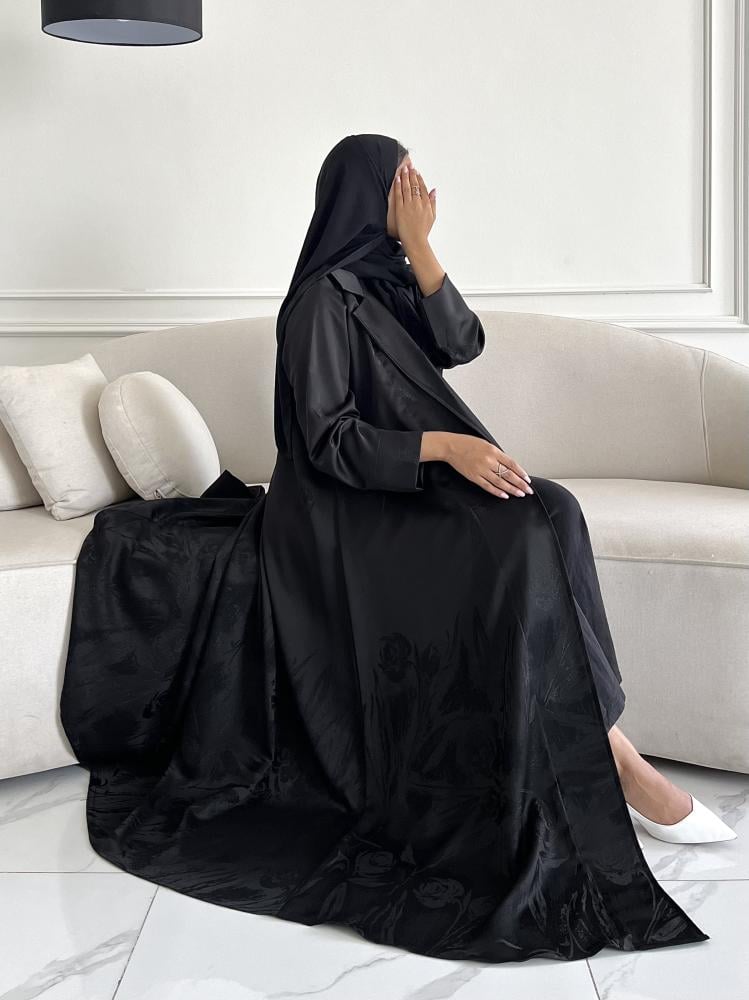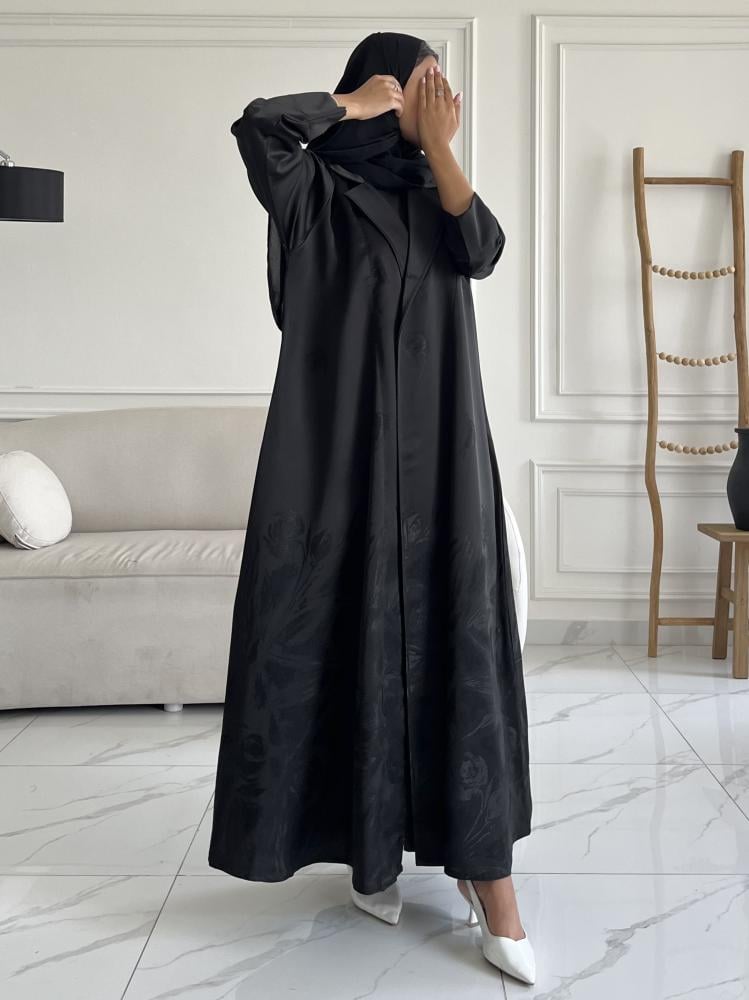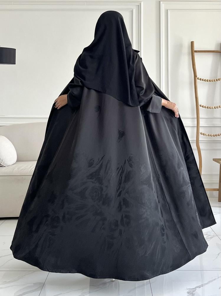 Z284 / قماش كريب مينيمات مع جاكار وكسرات اسفل العباية