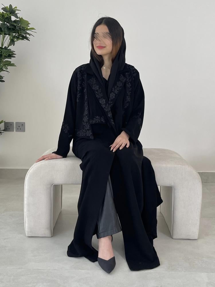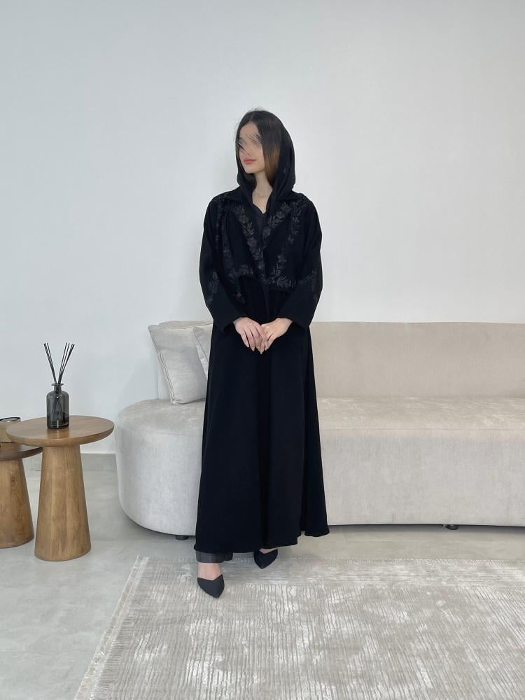 Z328 / قماش كريب لمياء وتطريز اسود عالصدر والاكمام