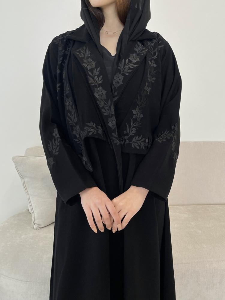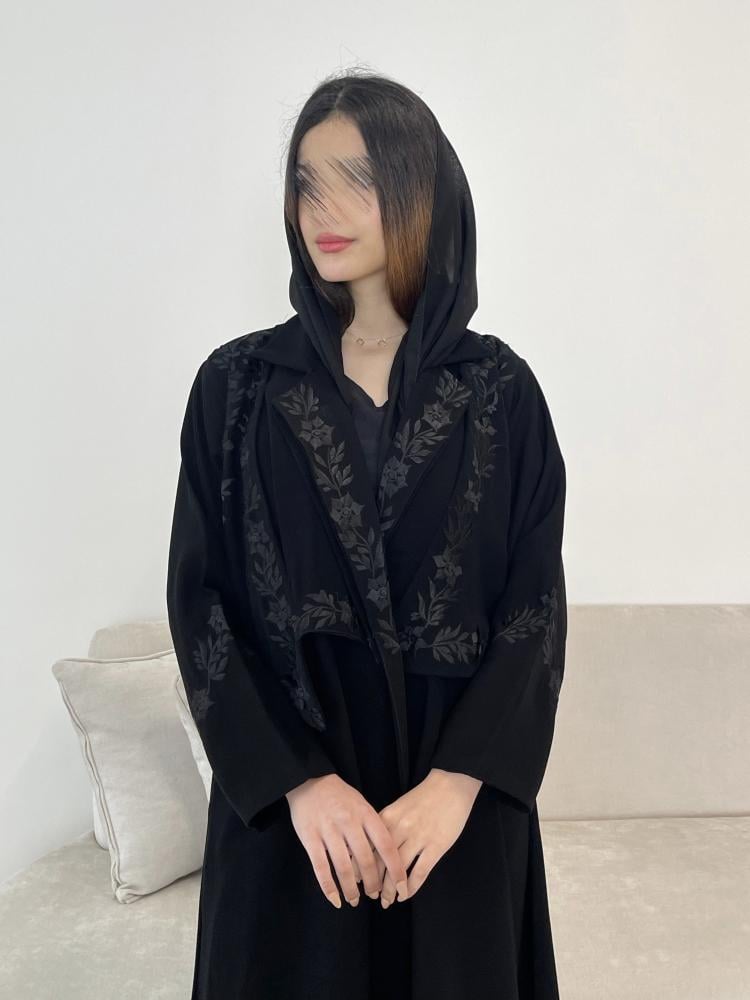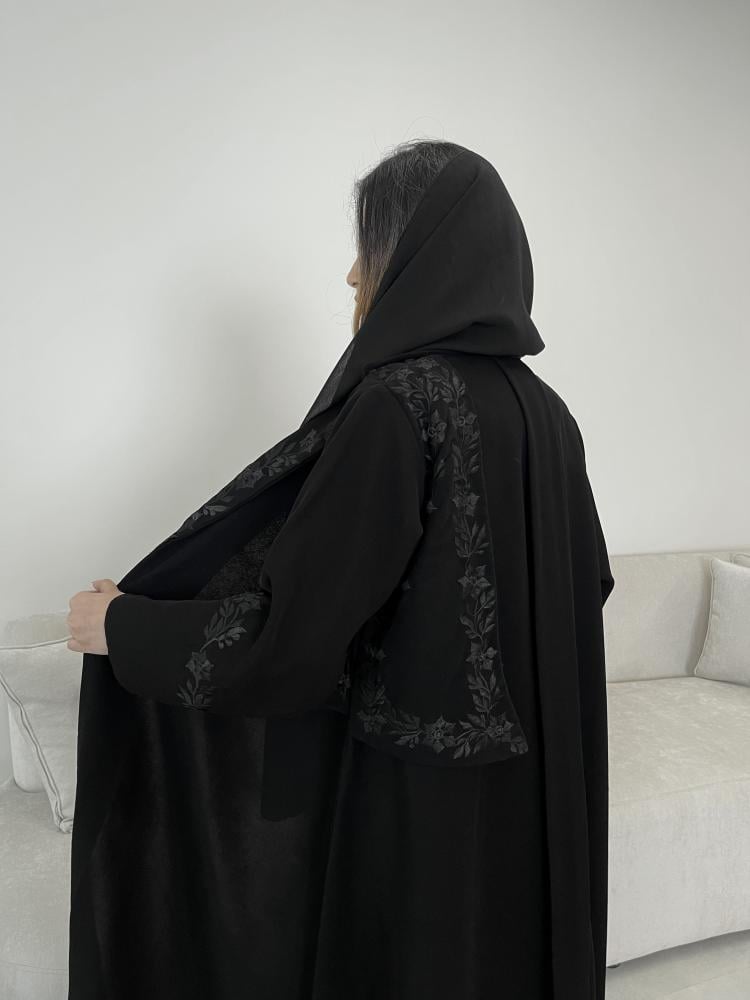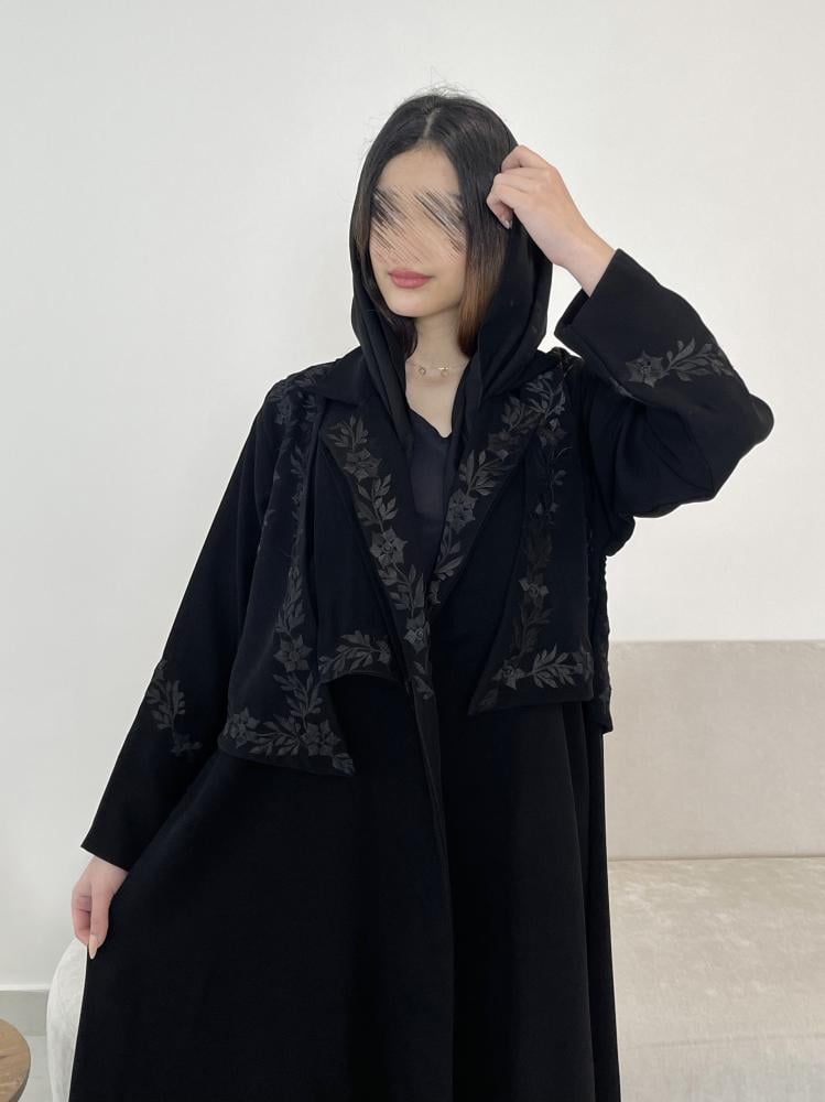 Z275 / قماش مينيمات ورسم يدوي اسفل العباية وطرف الكم