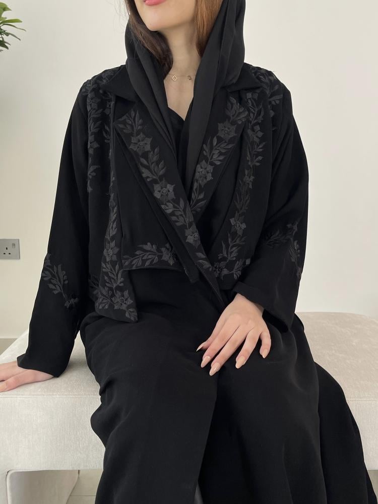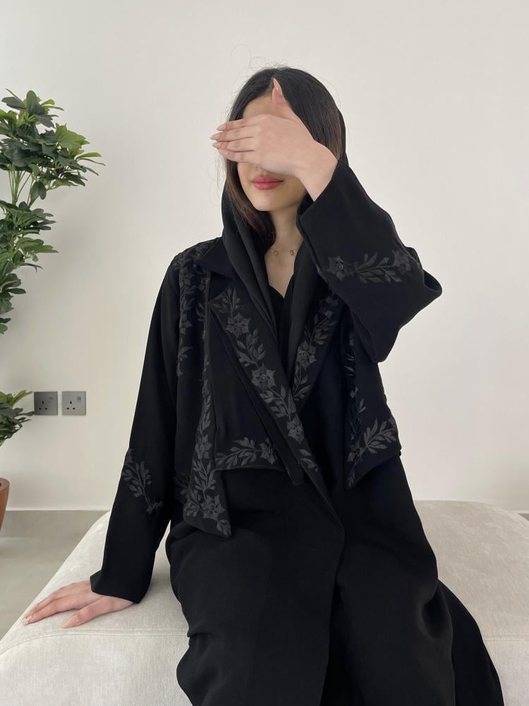 Z262 / قماش كريب كوبرا قصة جاكيت وتطريز اسود