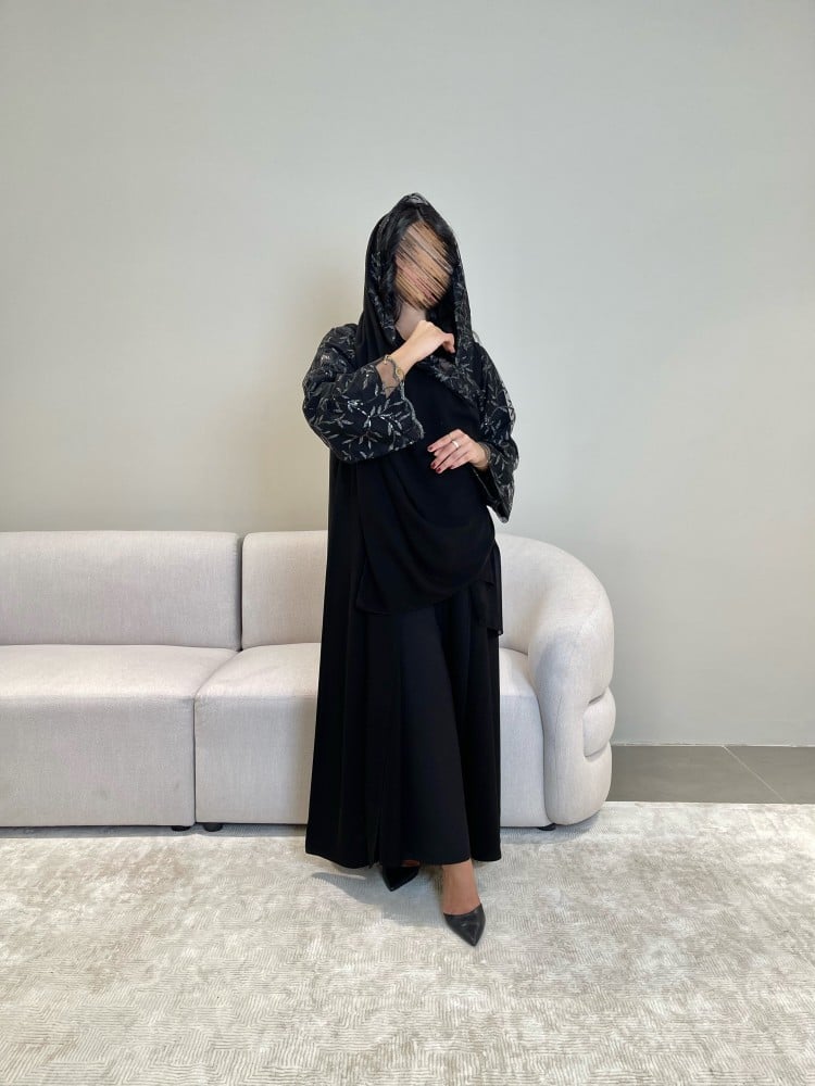 Z305 / قماش كريب وقماش اورقنزا مشجر بالامام يمين