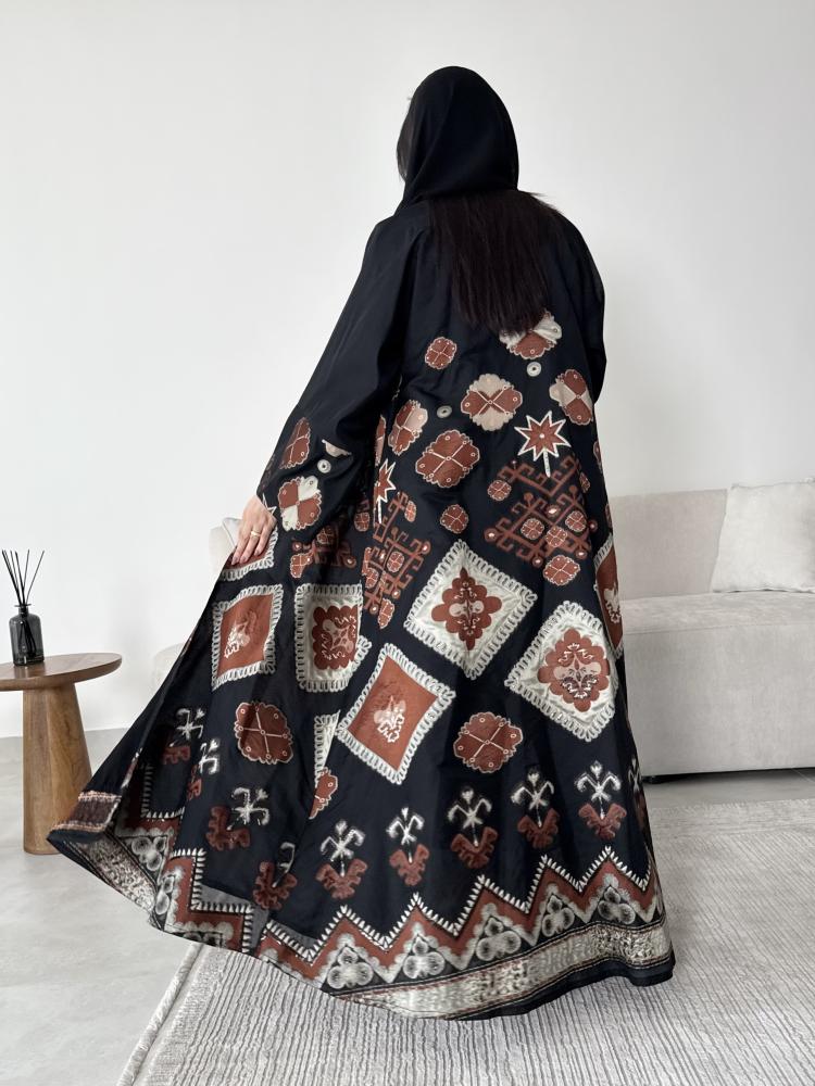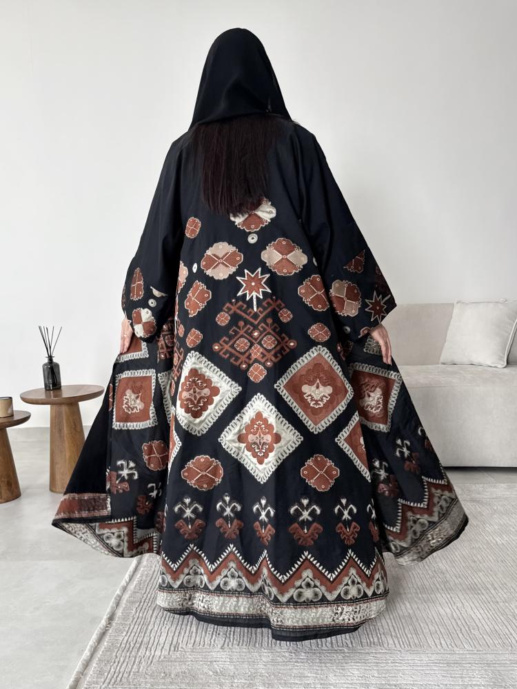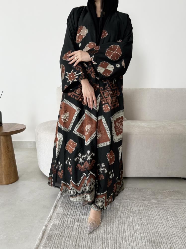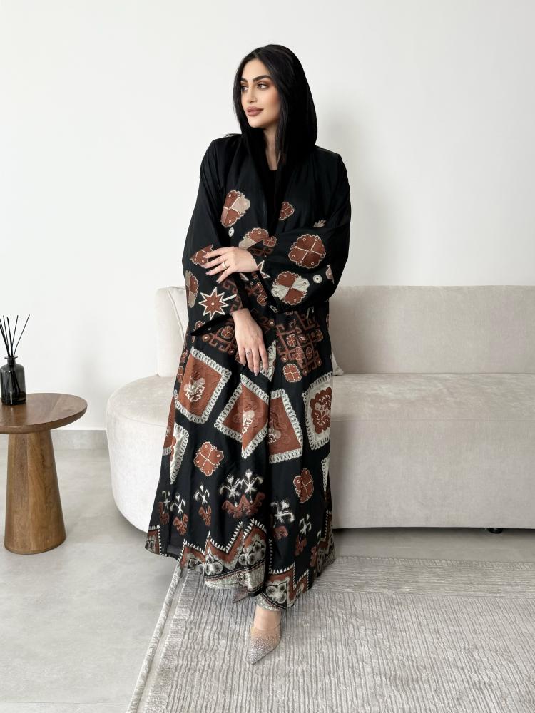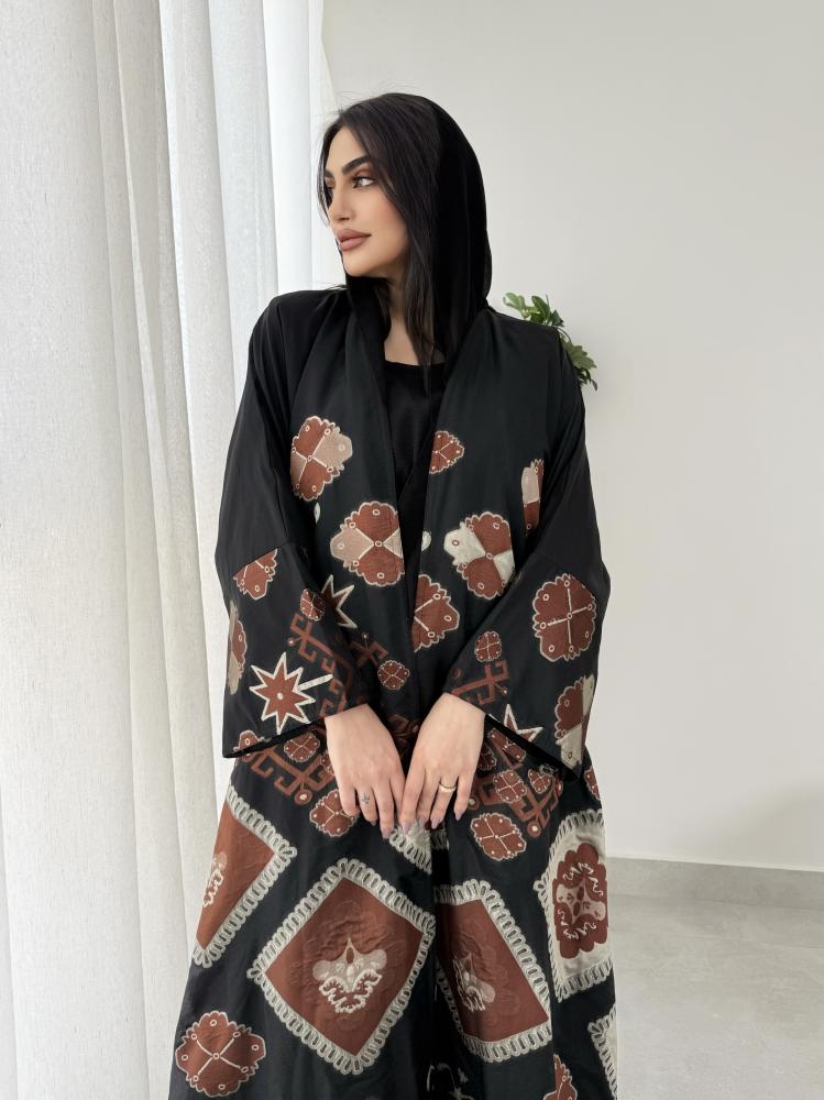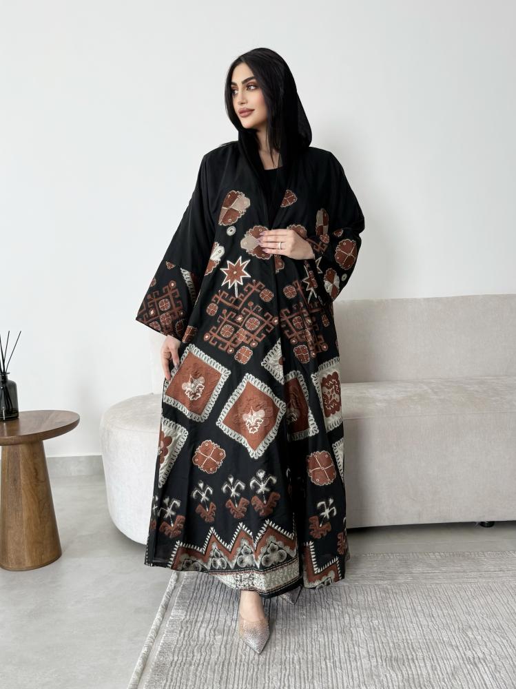 Z328 / قماش كريب لمياء وتطريز اسود عالصدر والاكمام