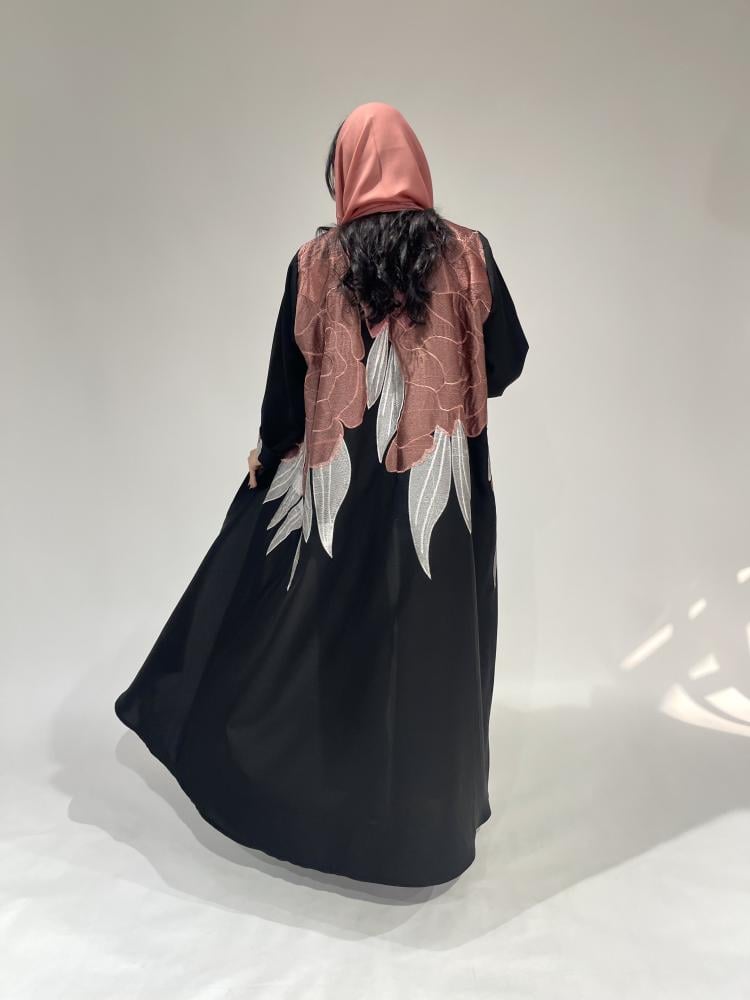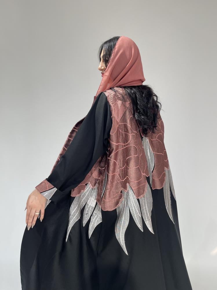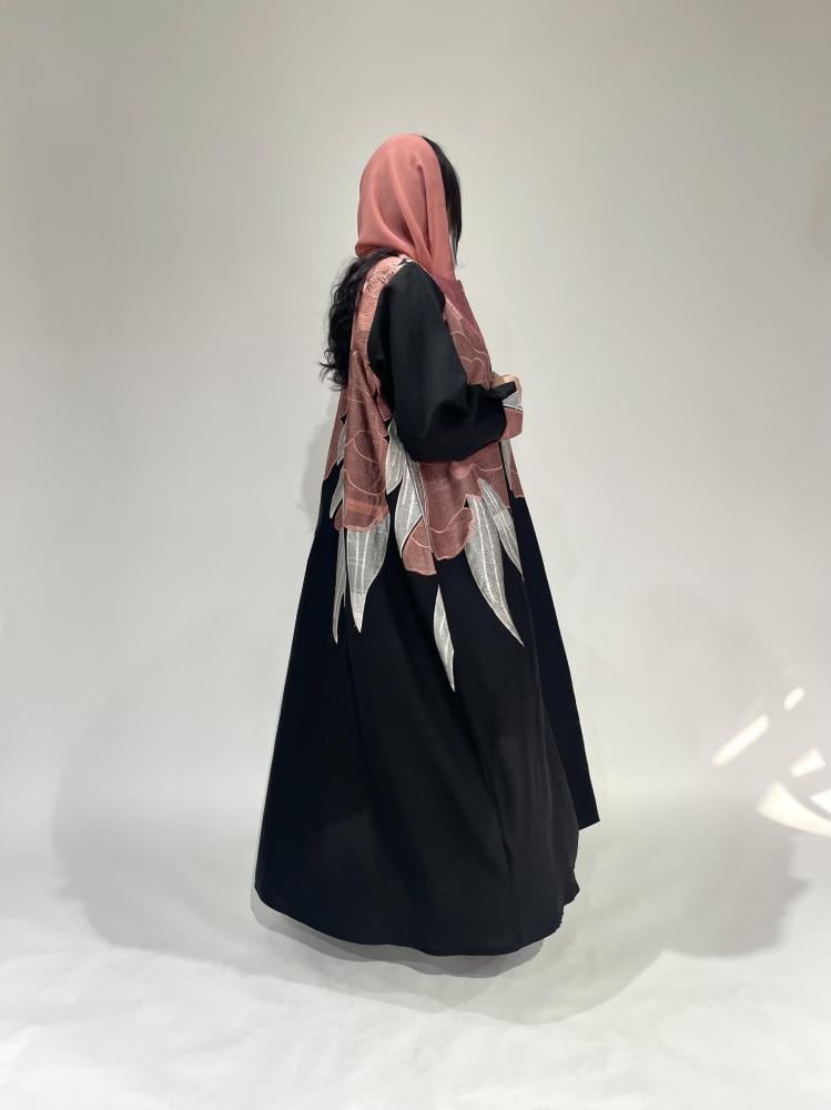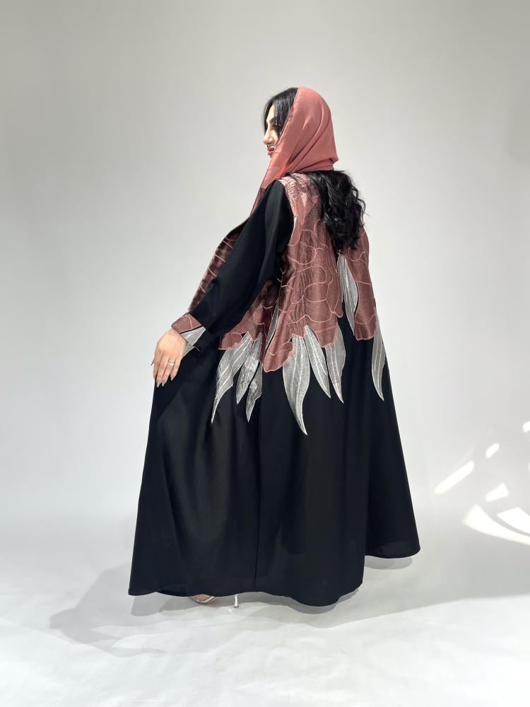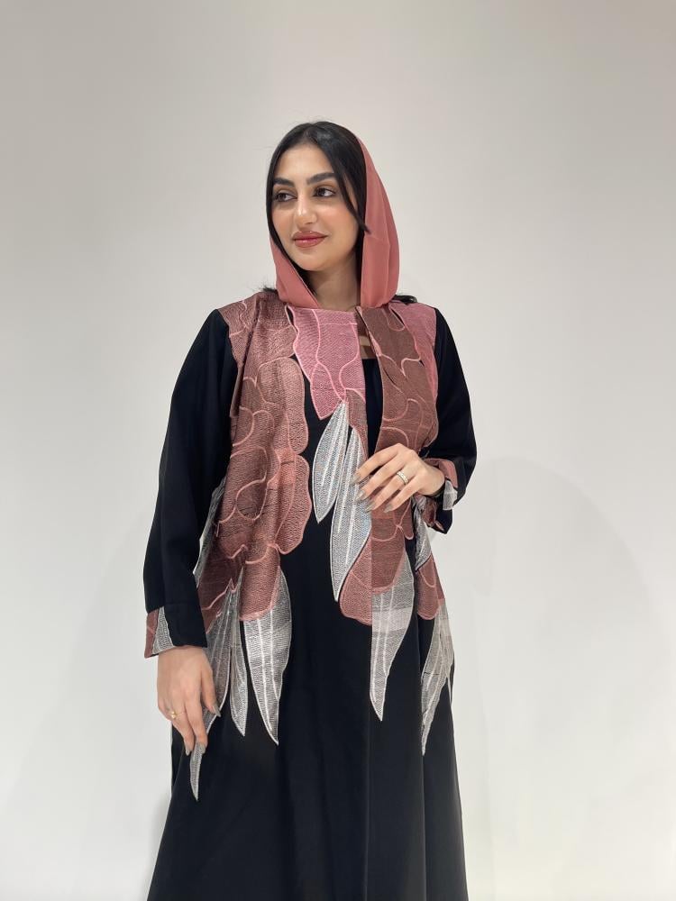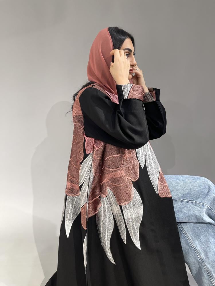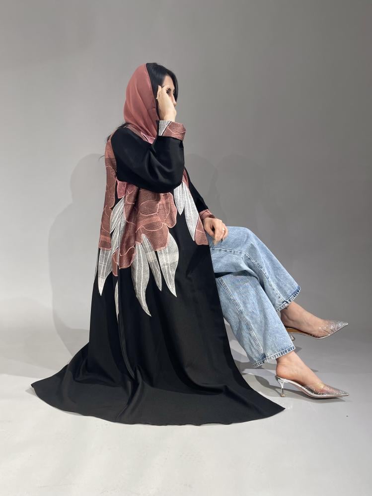 Z312 / قماش لينن كحلي وتطريز كمبيوتر كامل العباية