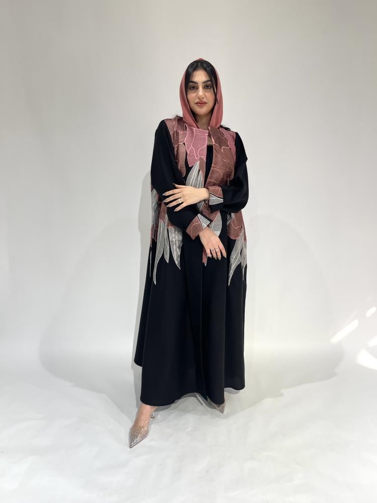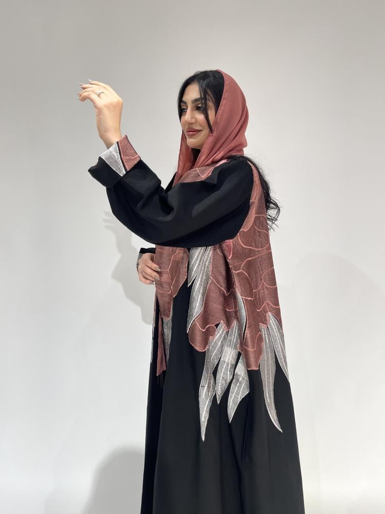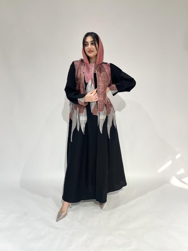 Z281 / قماش تفته مع ورد مطرز وكرستال امام وطرف الكم