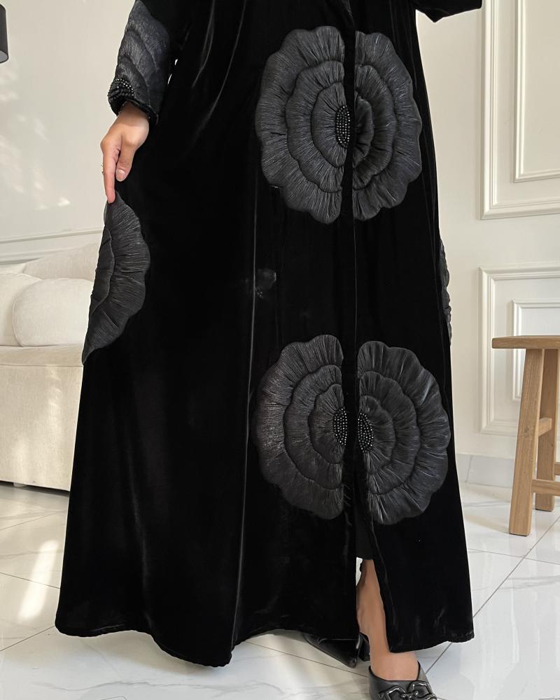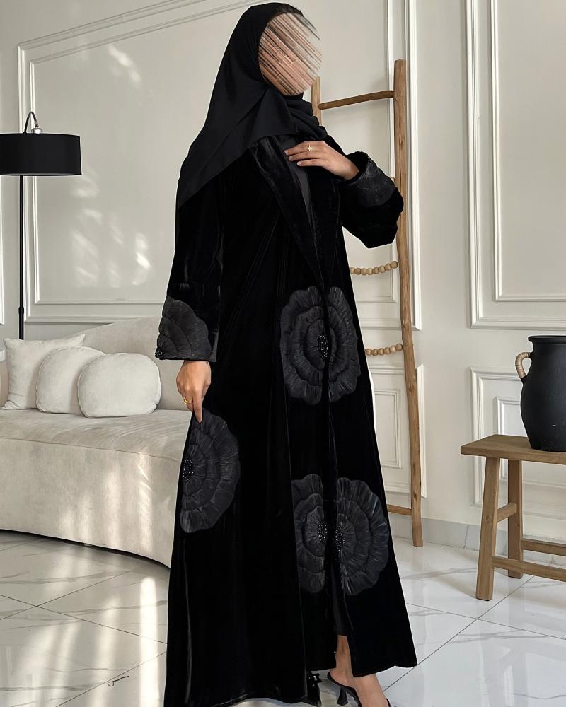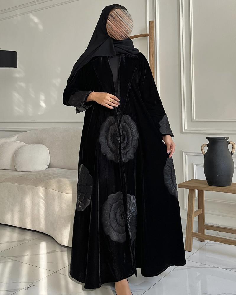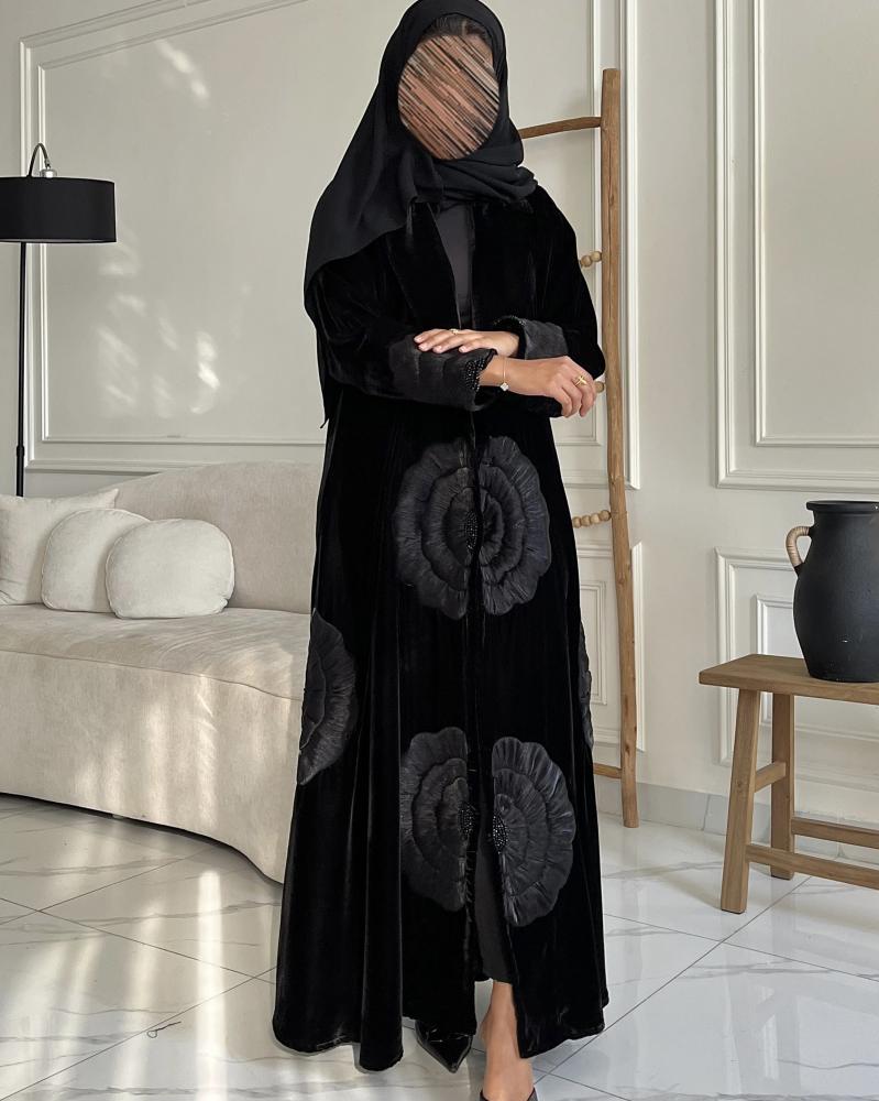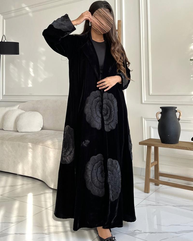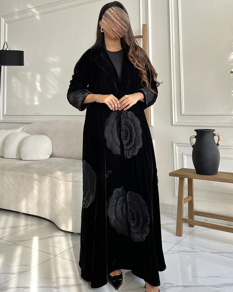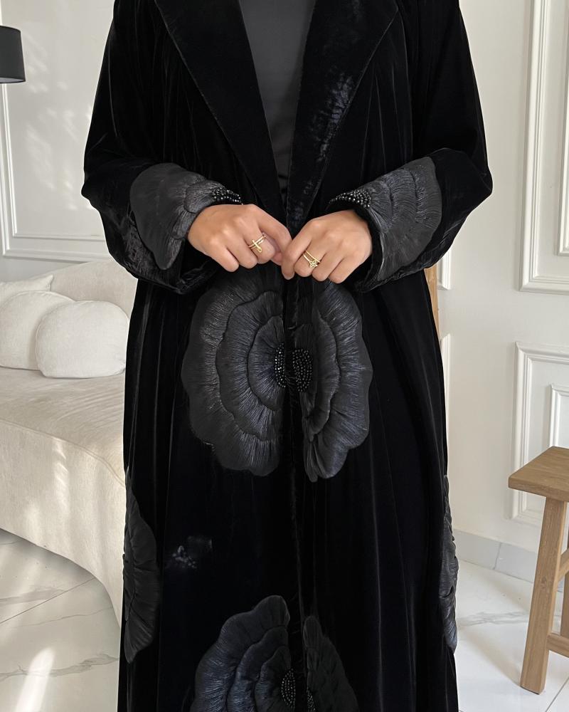 Z352 / قماش مخمل اسود ورسم يدوي على كامل العباية