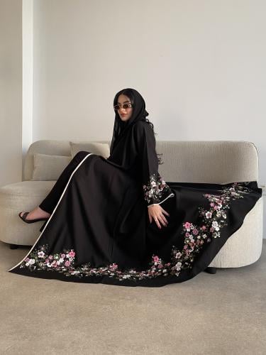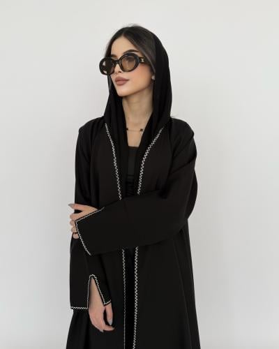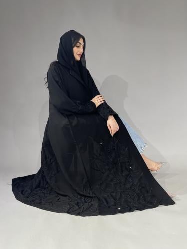 Z312 / قماش لينن كحلي وتطريز كمبيوتر كامل العباية