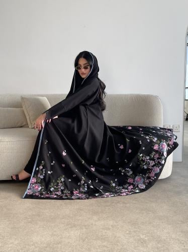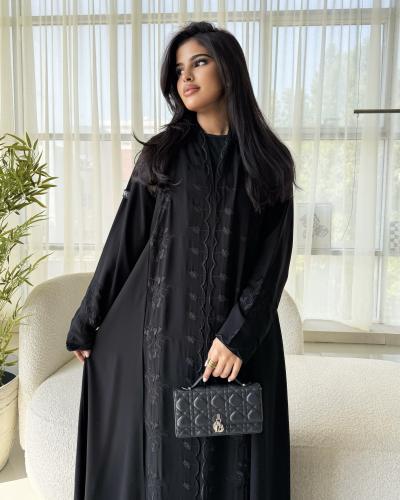 Z336 / قماش كريب كوبرا وتطريز اسود طرف الاكم وبالامام