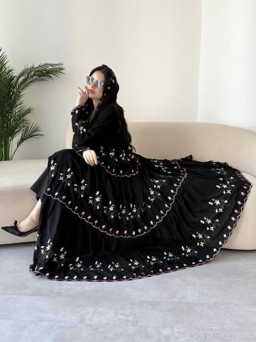 Z297 / قماش كريب وشيفون مطرز ثلاث طبقات وطرف الكم