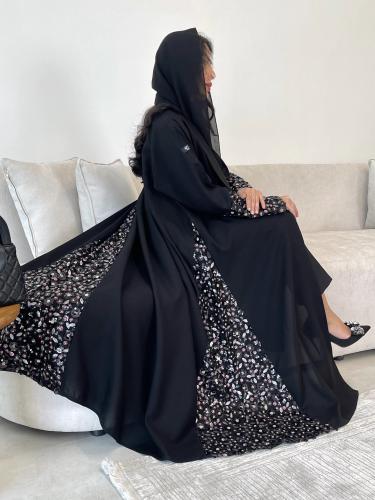 Z246 / قماش كريب كوبرا مع شك كرستال بالامام وطرف الكم