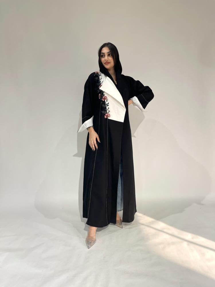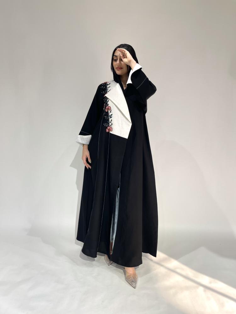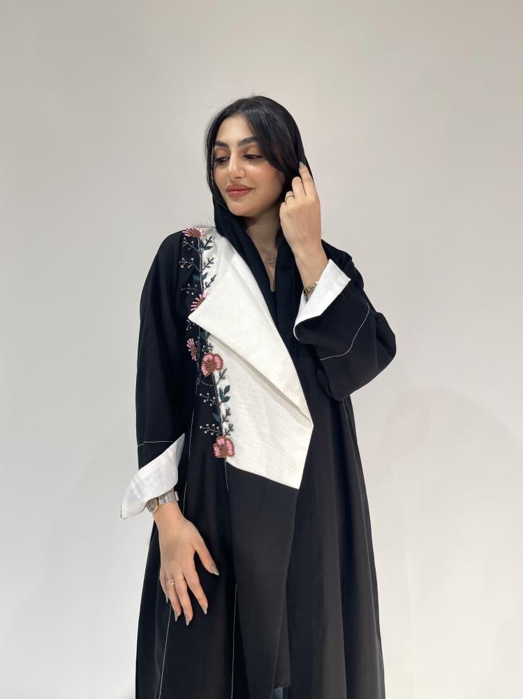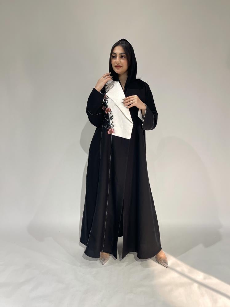 Z220 / قماش مخمل اسود وكسرات كريب مع كلفه ورد