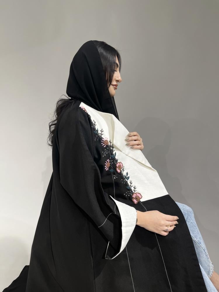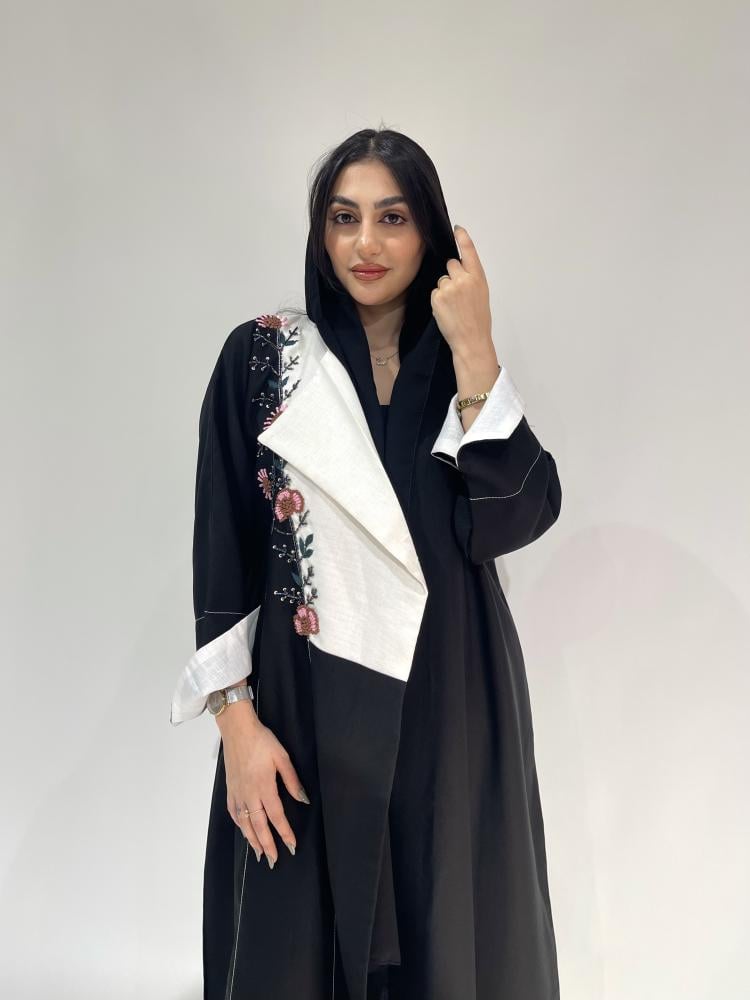 Z198 / قماش كريب اسود وتدخيله ابيض مع شك