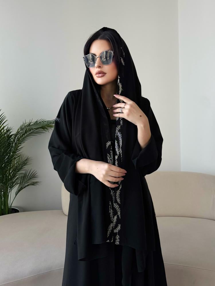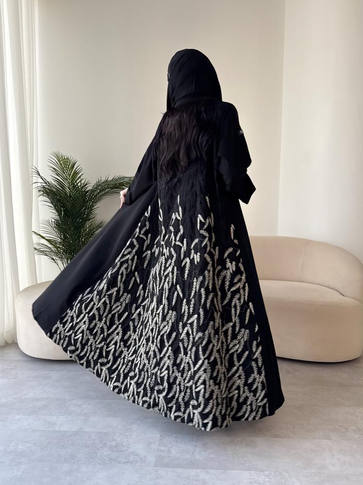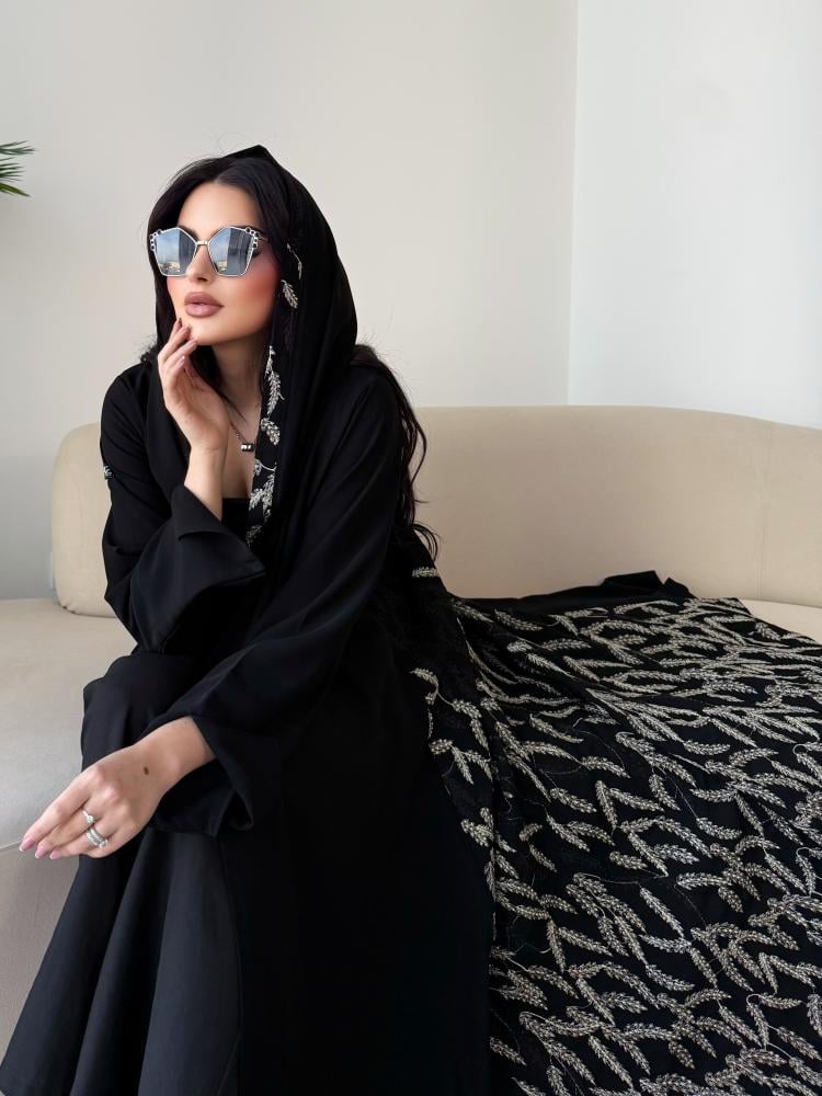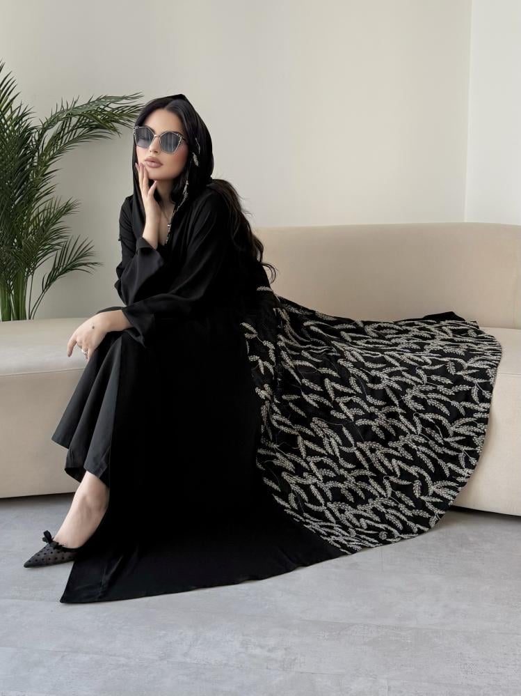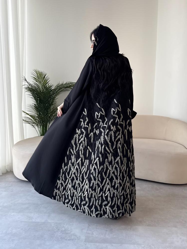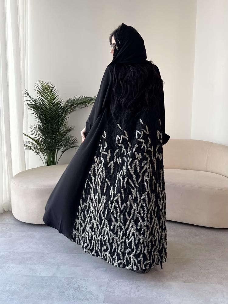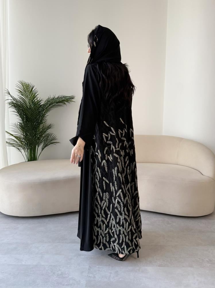 Z300 / قماش كريب وتطريز كمبيوتر بالخلف خيوط زري فضي واسود