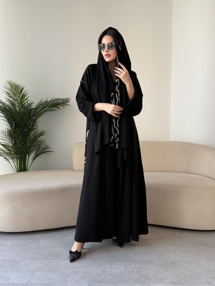 Z275 / قماش مينيمات ورسم يدوي اسفل العباية وطرف الكم