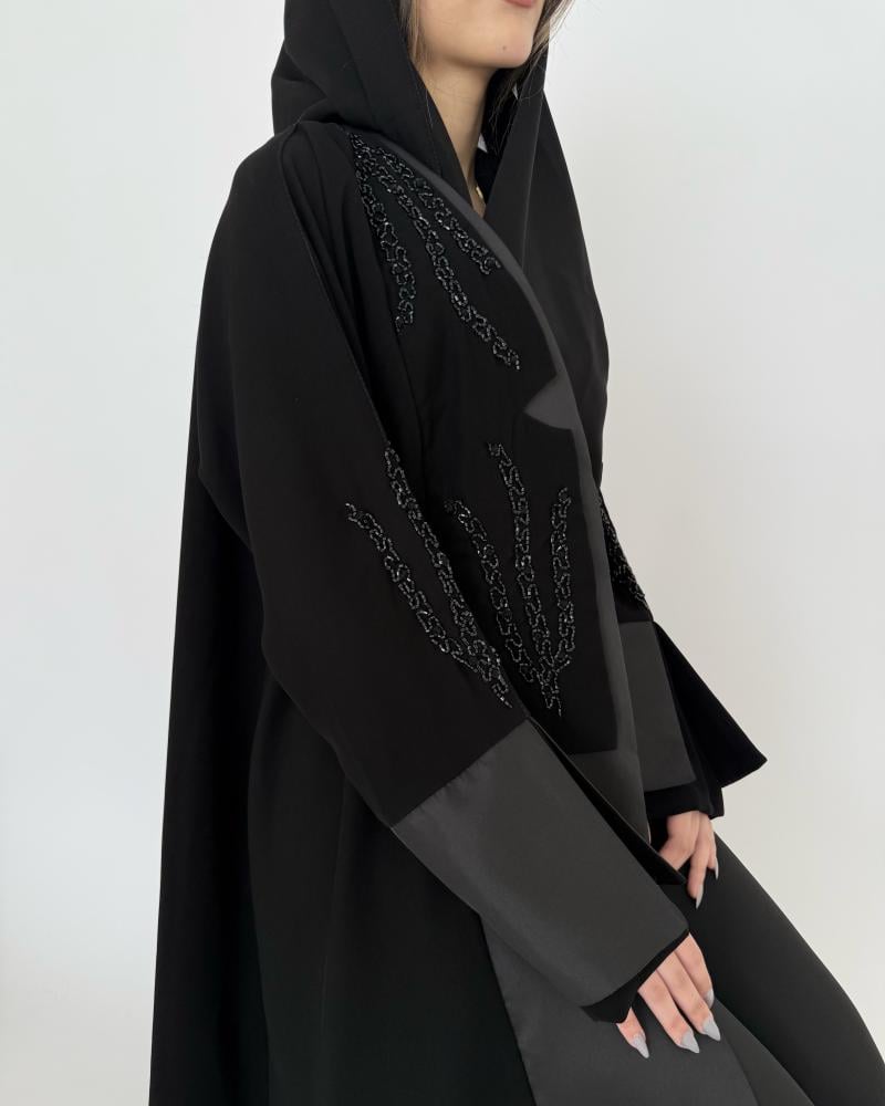 Z312 / قماش لينن كحلي وتطريز كمبيوتر كامل العباية