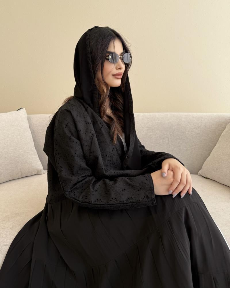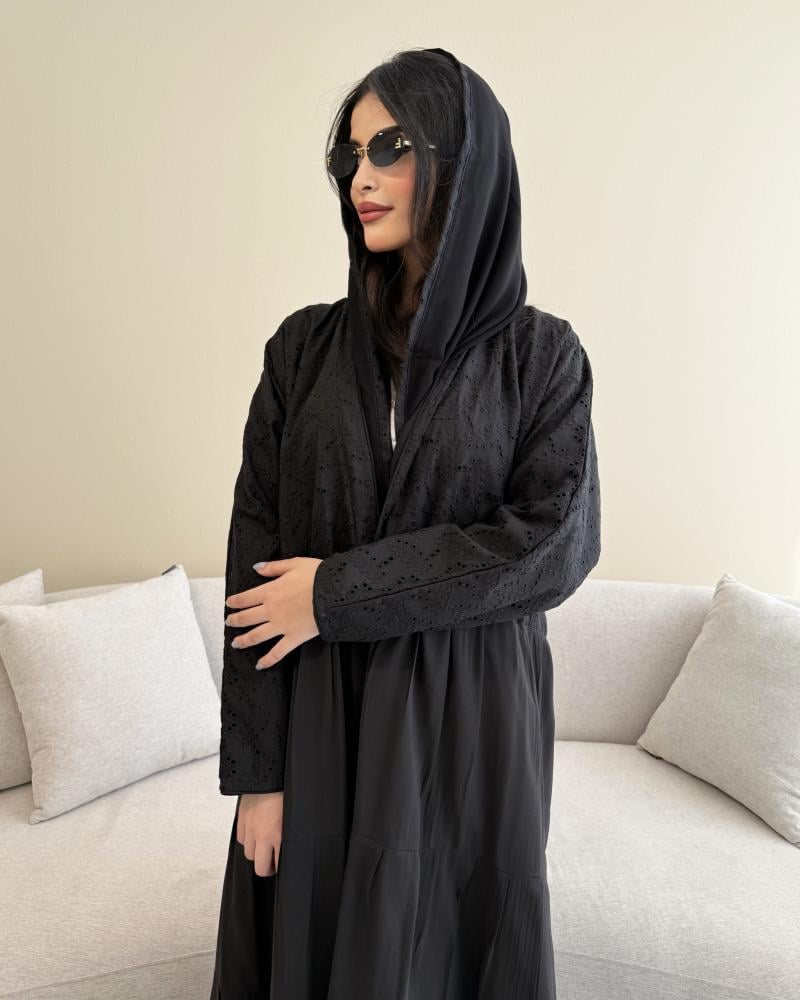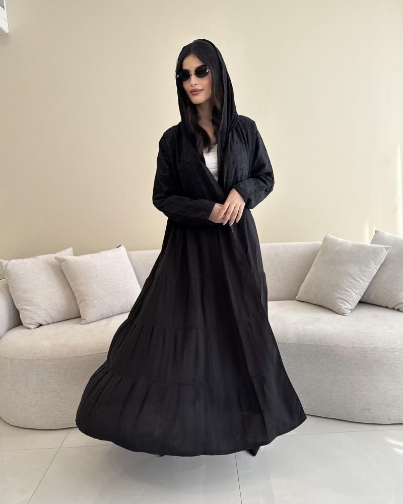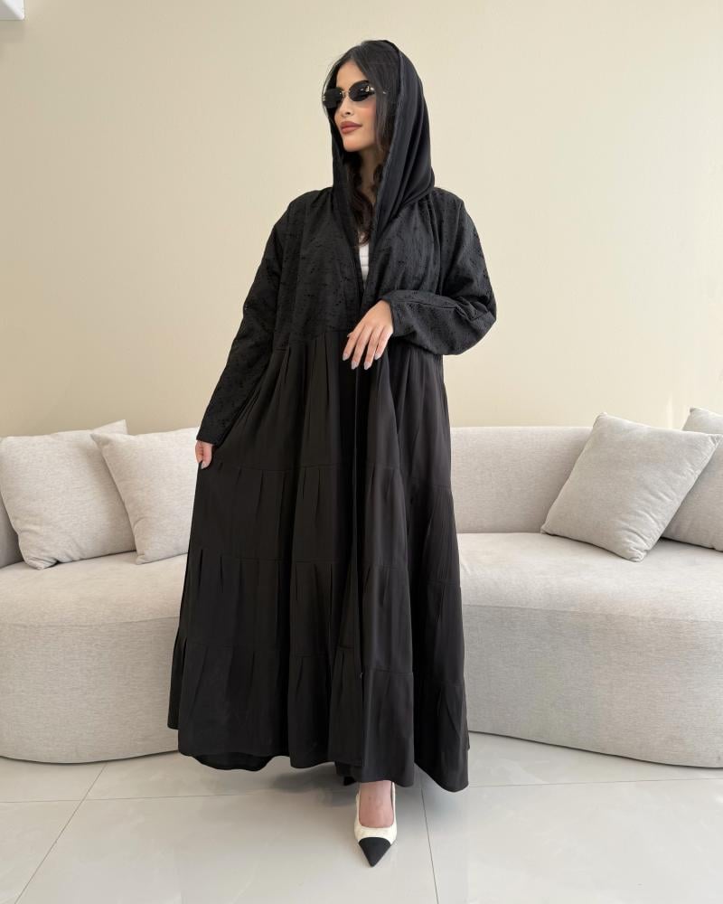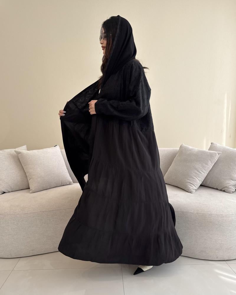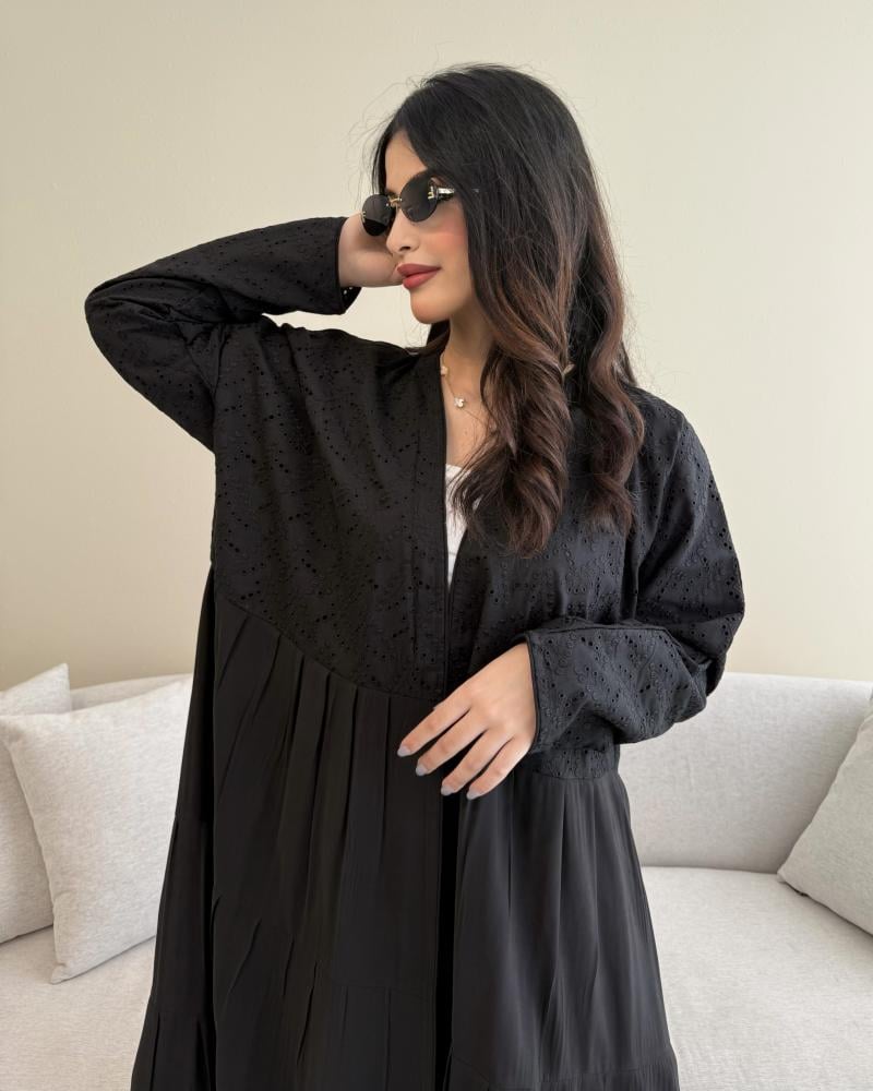 Z340 / قماش تفته واقف اسود مشجر من تحت وطرف الكم