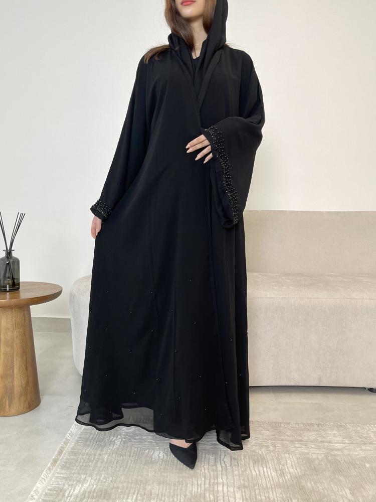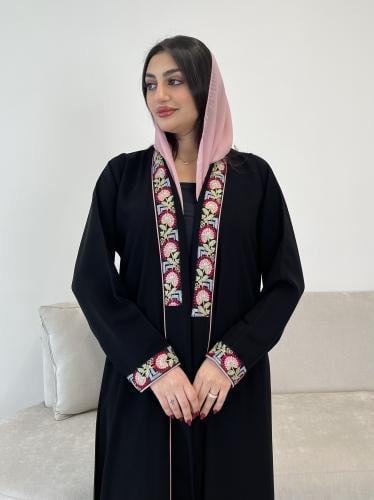 Z312 / قماش لينن كحلي وتطريز كمبيوتر كامل العباية