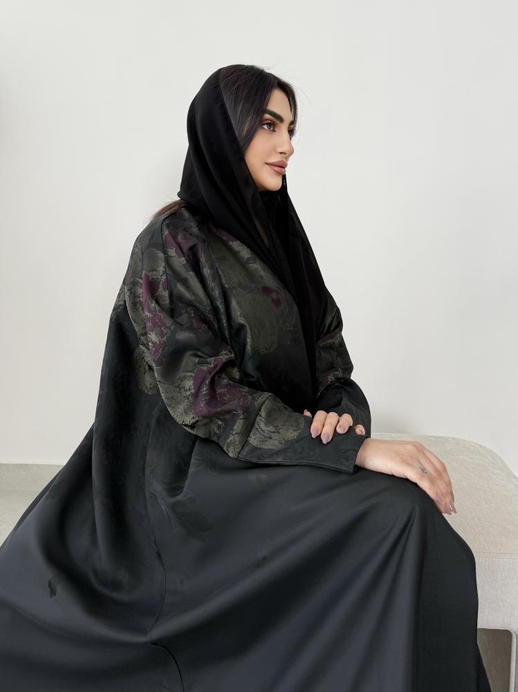 Z293 / قماش جاكار تركي اسود مشجر زيتي وموف غامق