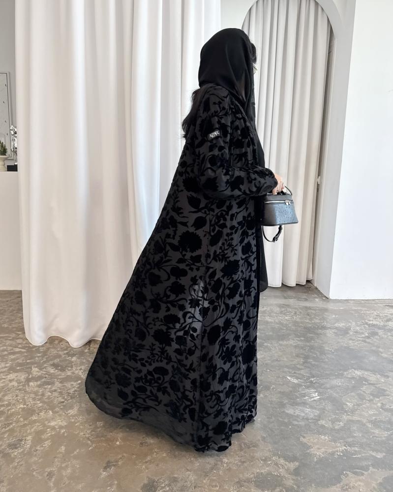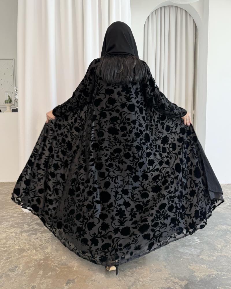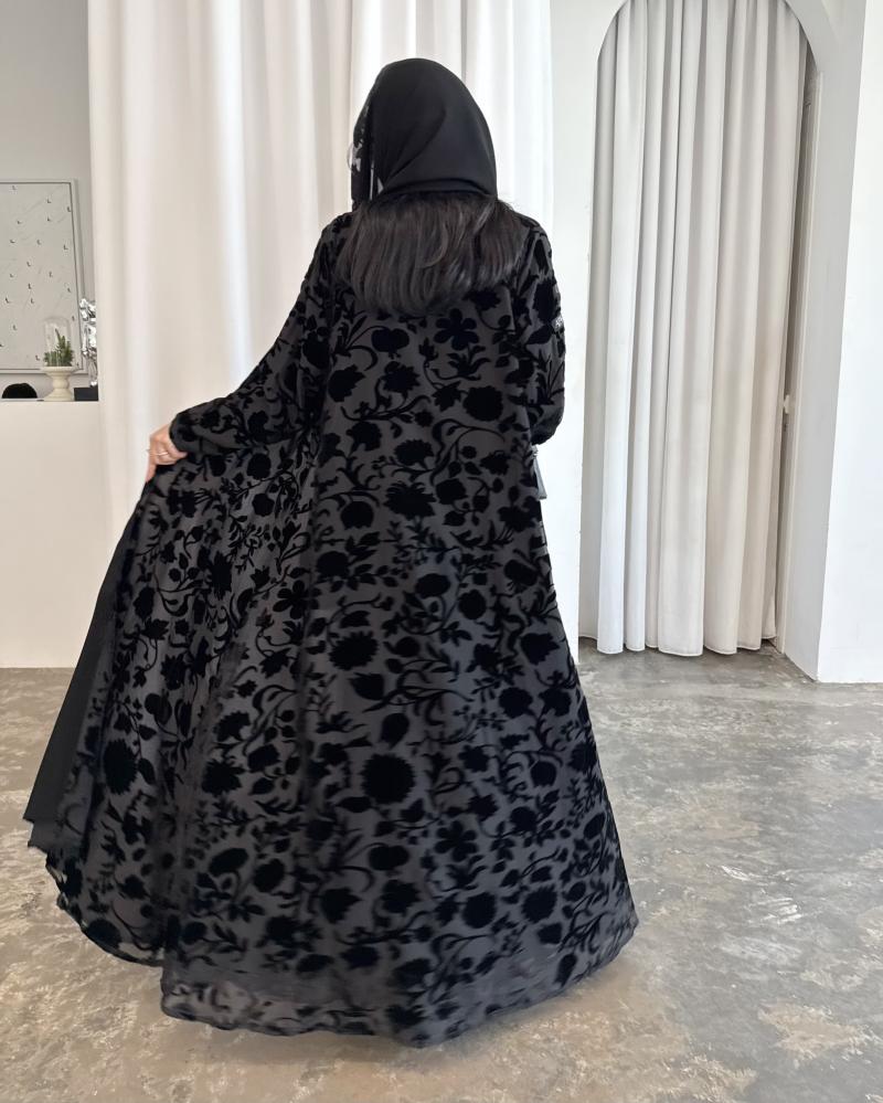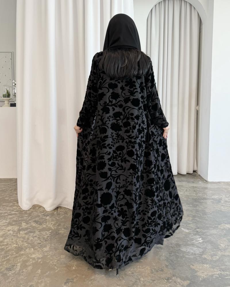 Z360 / قماش شيفون مشجر مخمل مطفي كامل وبطانه اسود