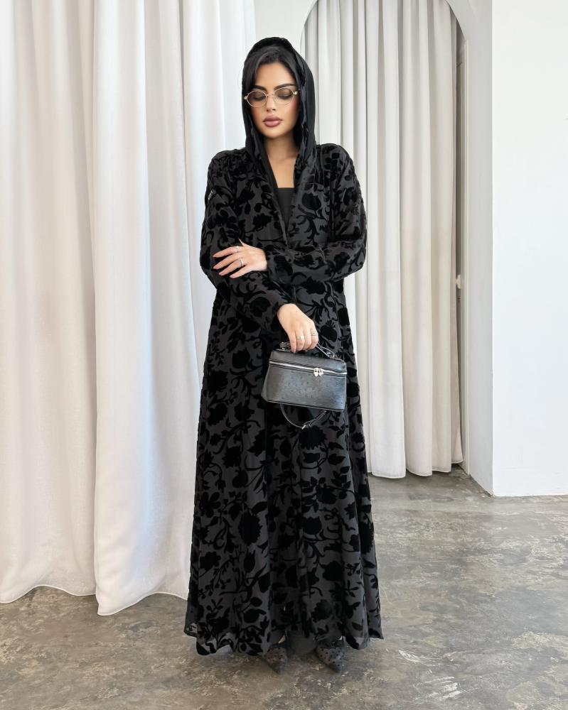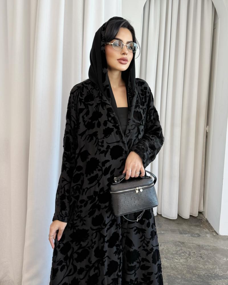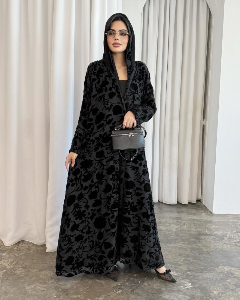 Z226 / قماش مخمل اسود وتطريز كمبيوتر بالخلف