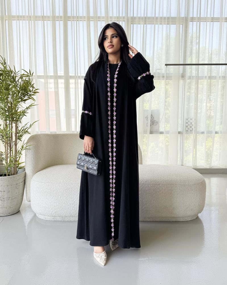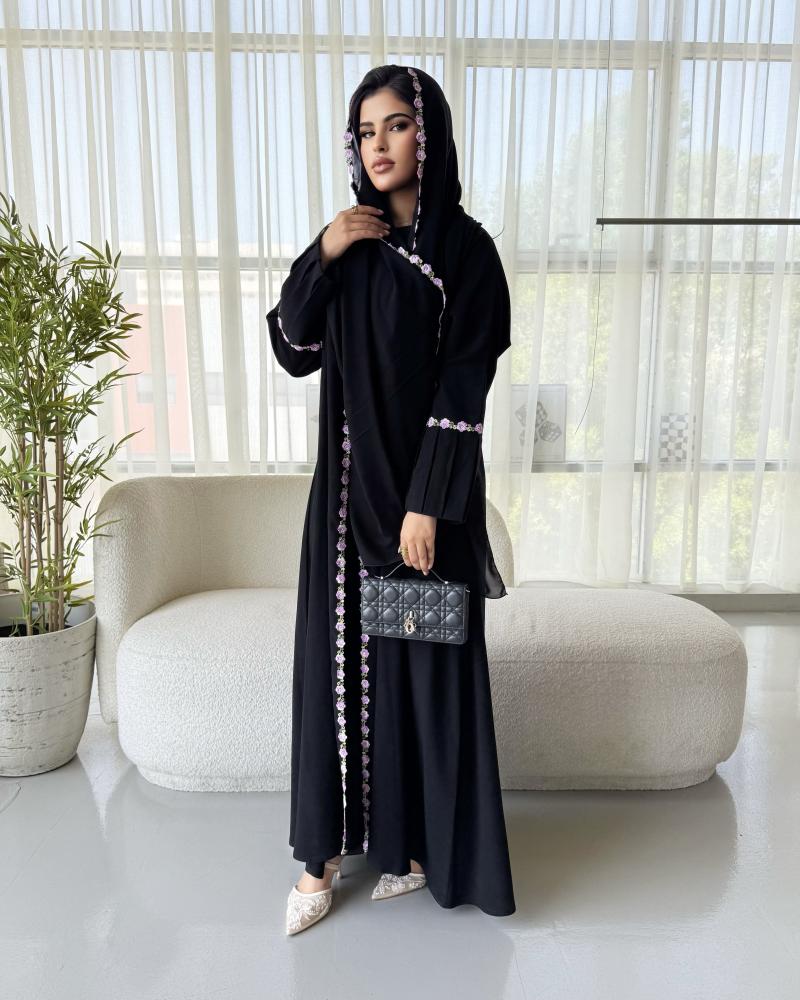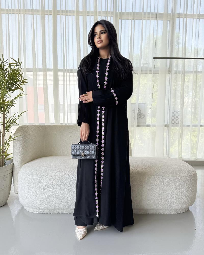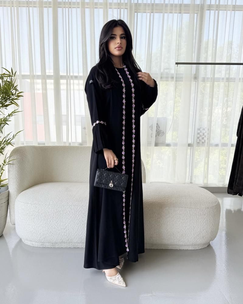 Z337 / قماش كريب كوبرا وكلفه ورد بالامام والخلف مع كسره