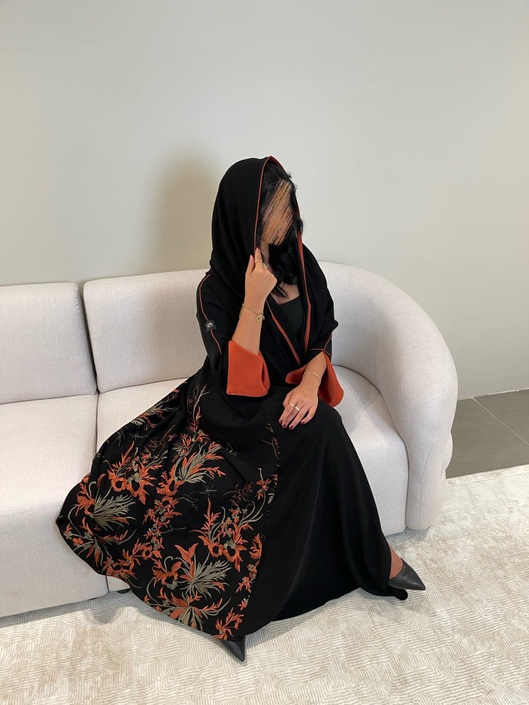 Z296 / قماش كريب وشيفون مطرز بالجوانب والاكمام والطرحه