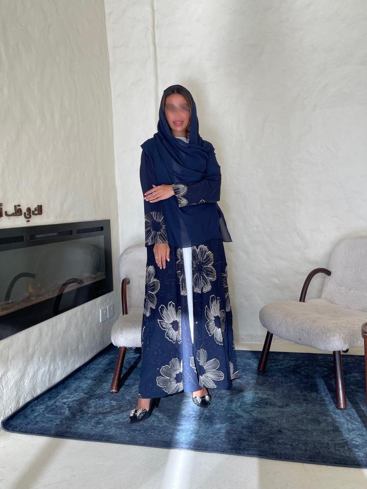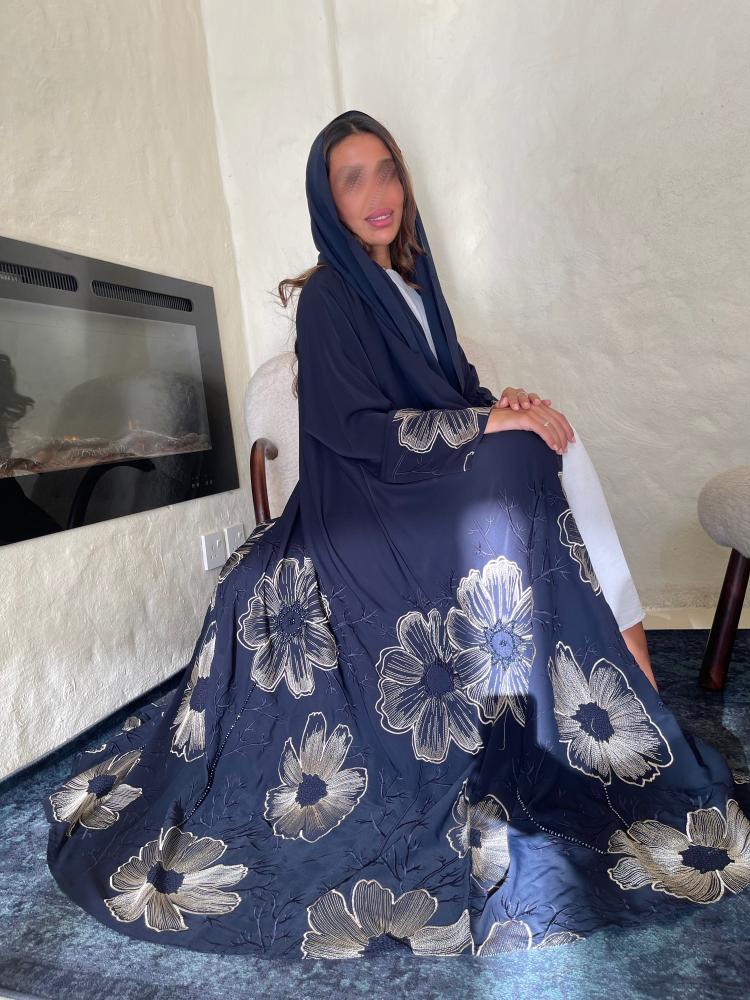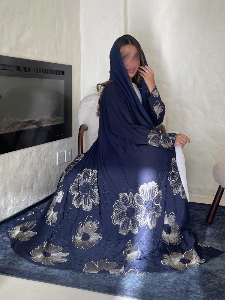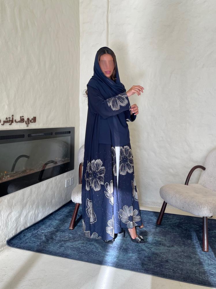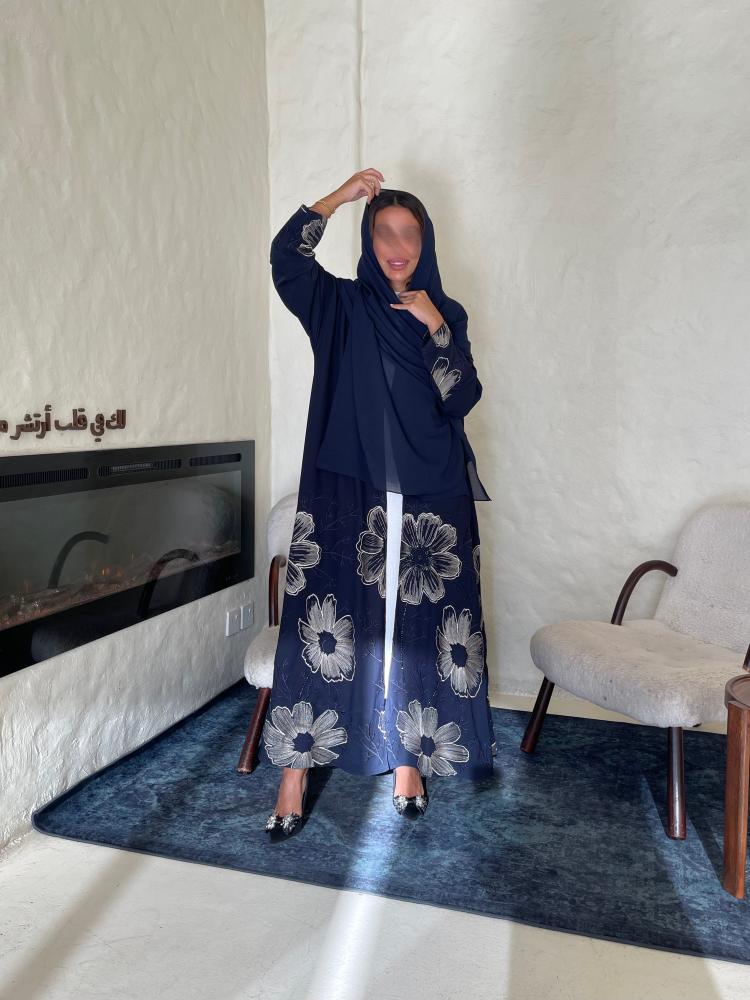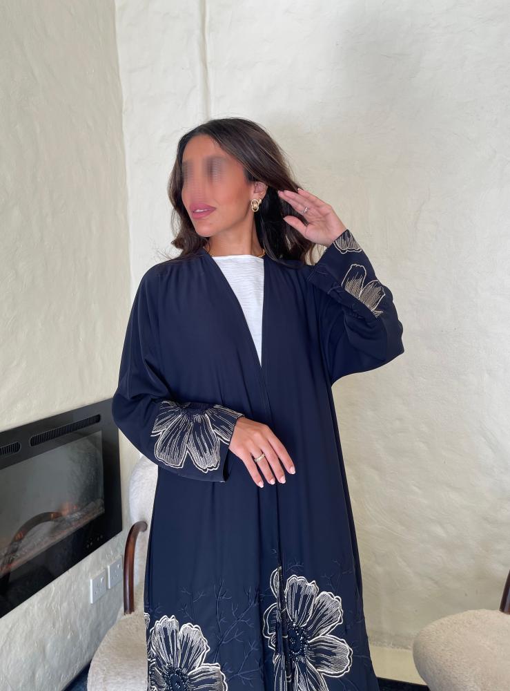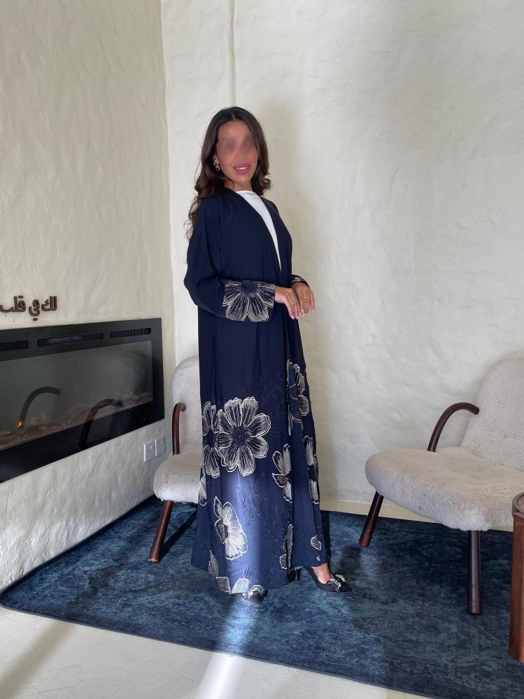 Z275 / قماش مينيمات ورسم يدوي اسفل العباية وطرف الكم