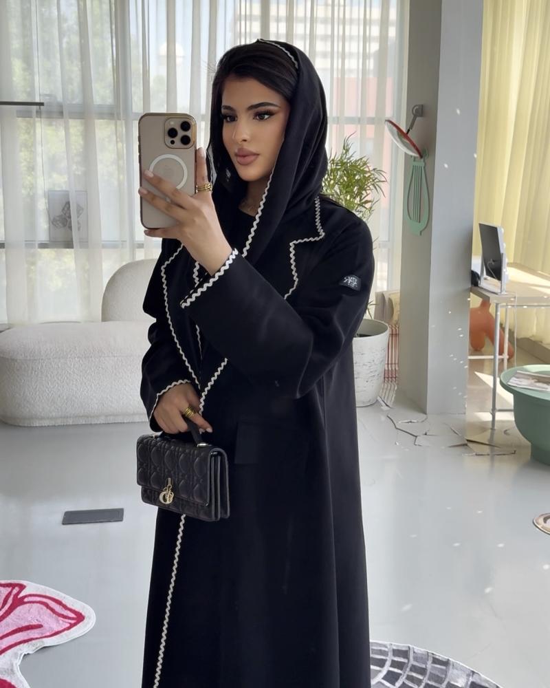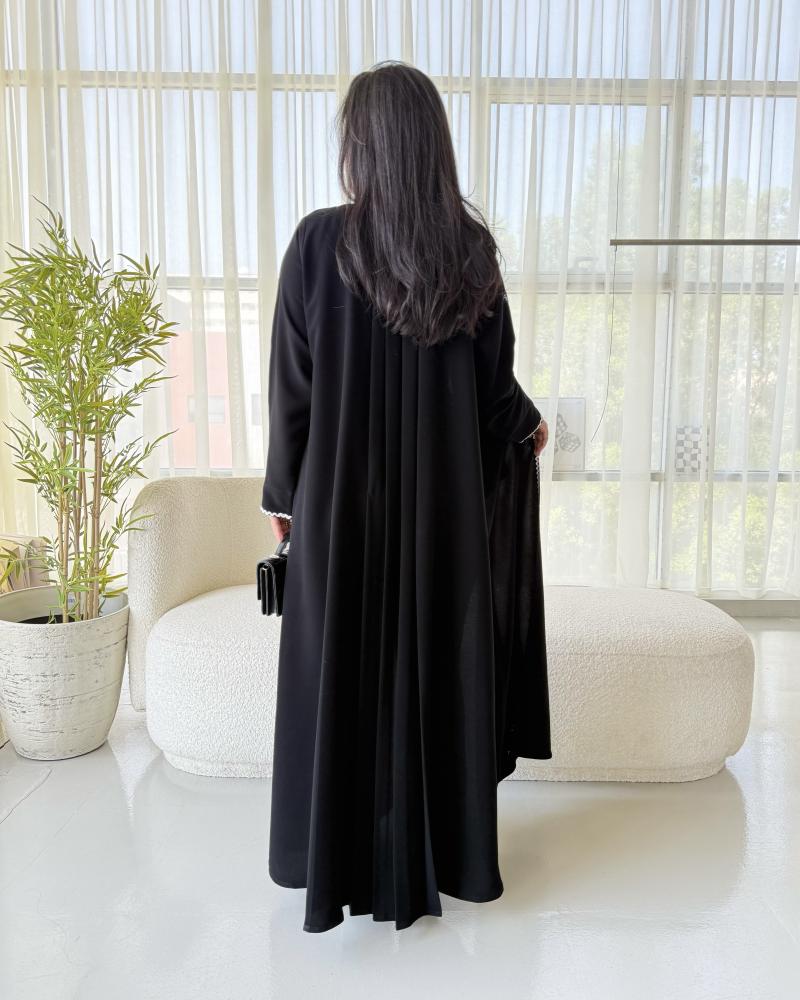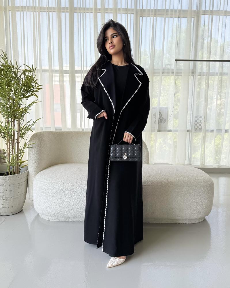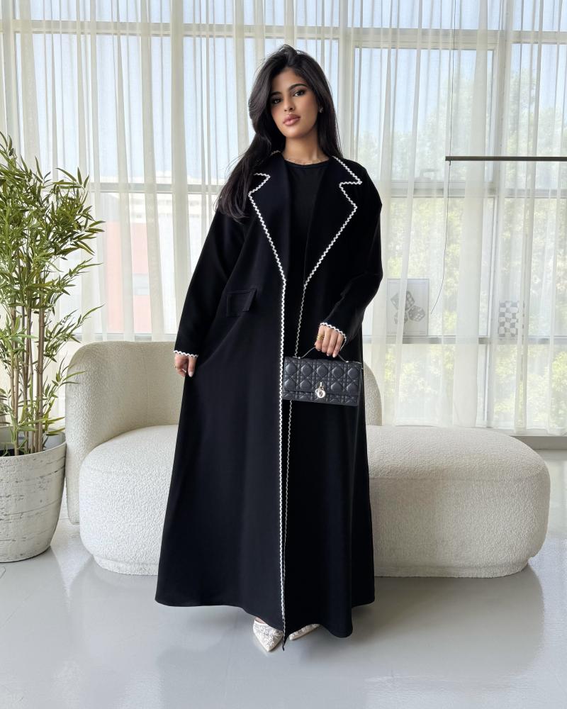 Z340 / قماش تفته واقف اسود مشجر من تحت وطرف الكم