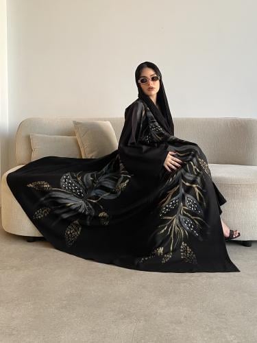 Z284 / قماش كريب مينيمات مع جاكار وكسرات اسفل العباية