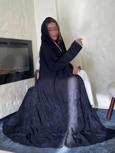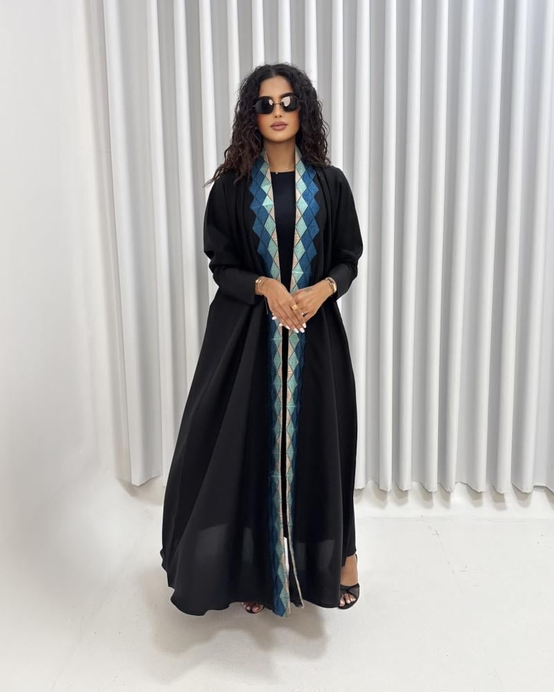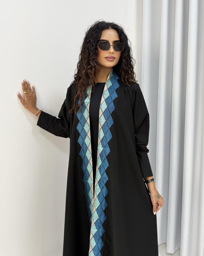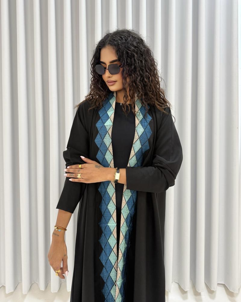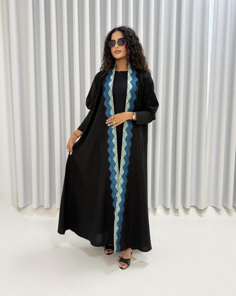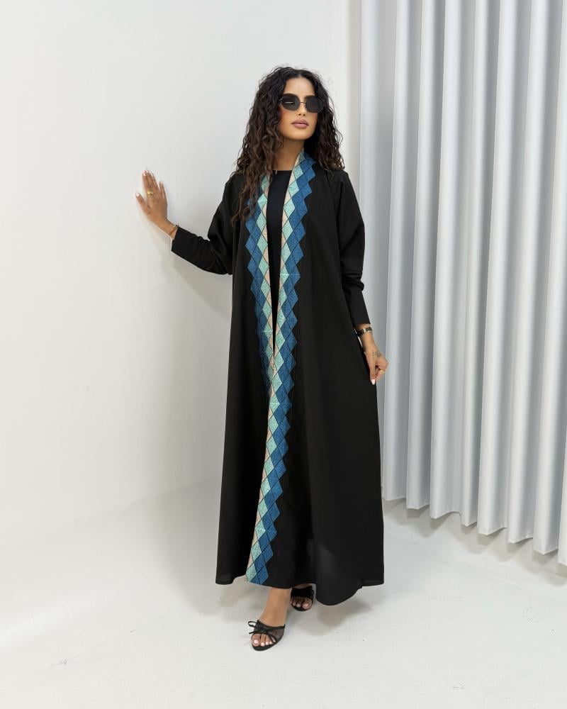 Z312 / قماش لينن كحلي وتطريز كمبيوتر كامل العباية