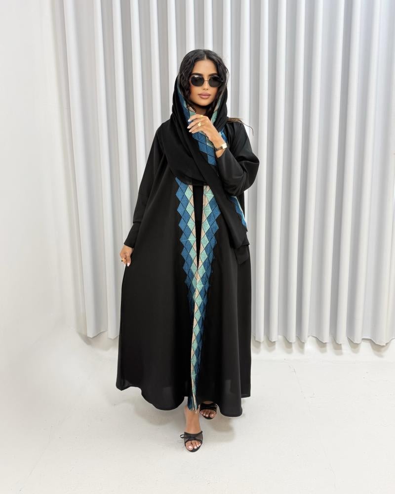 Z180 / قماش كريب اسود خفيف وتطريز كمبيوتر اسود وكحلي