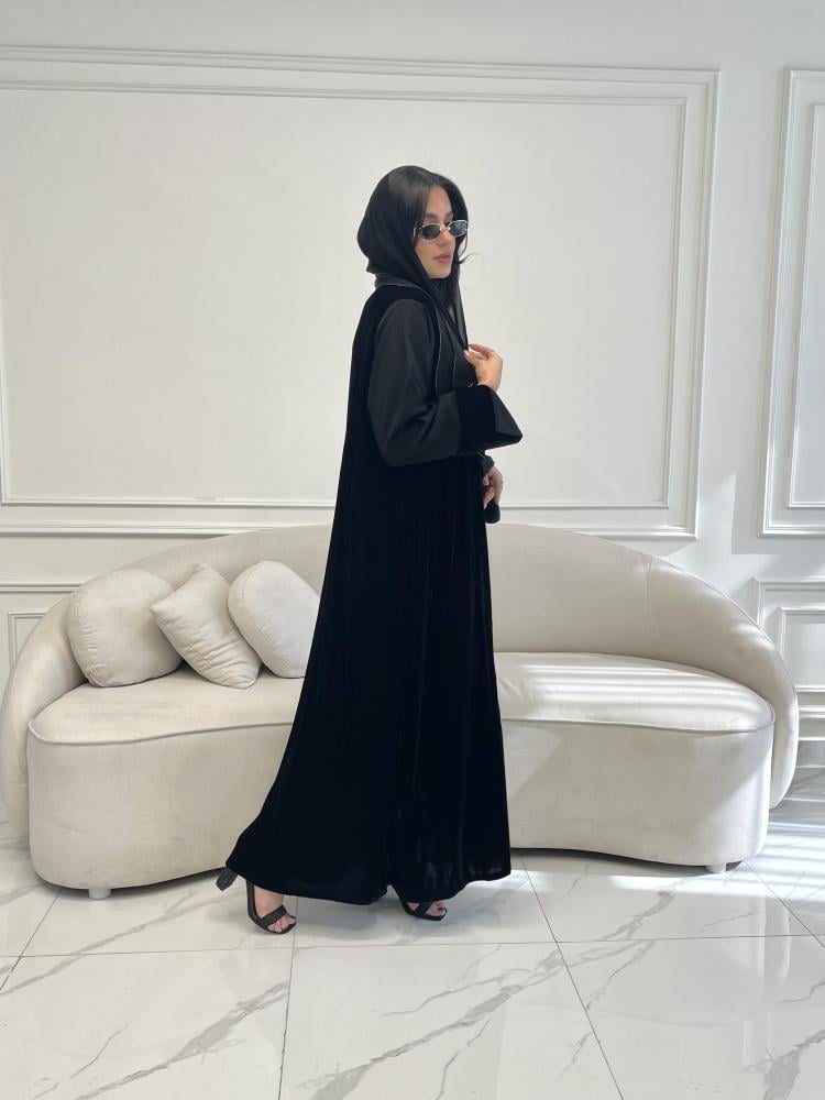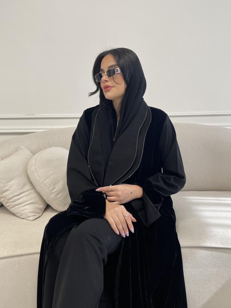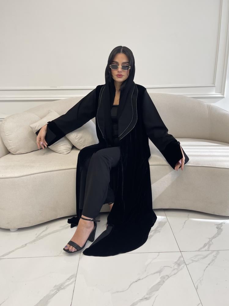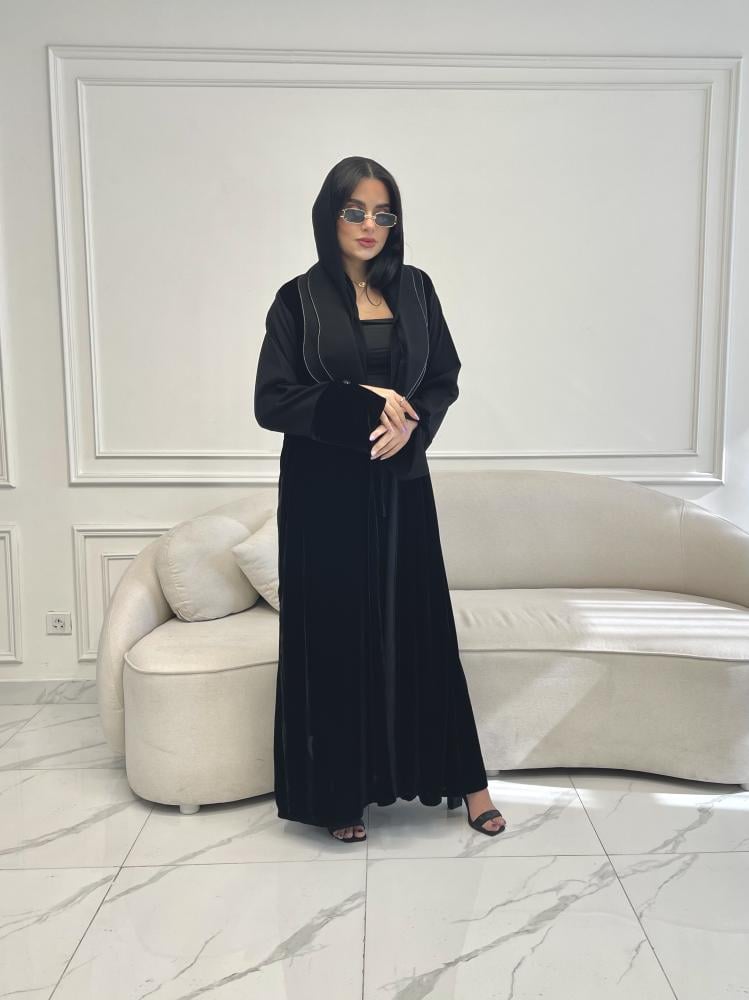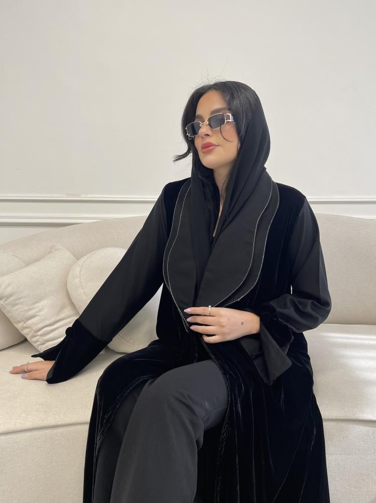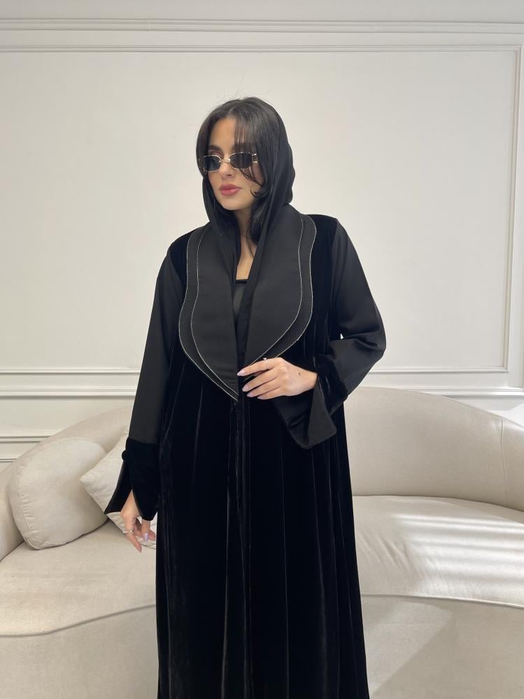 Z218 / قماش مخمل اسود وياقه واكمام كريب اسود