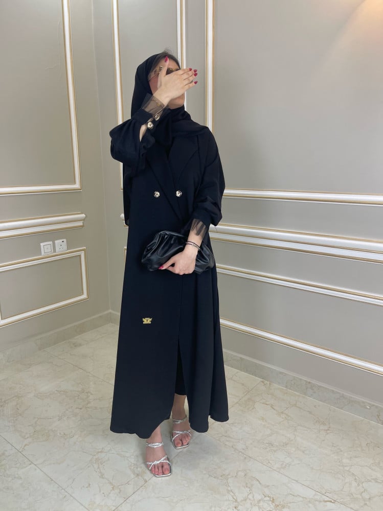Z335 / قماش كريب كوبرا وتطريز اسود بالكم و عالجنب مع كسرات