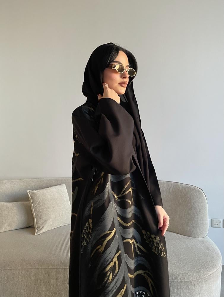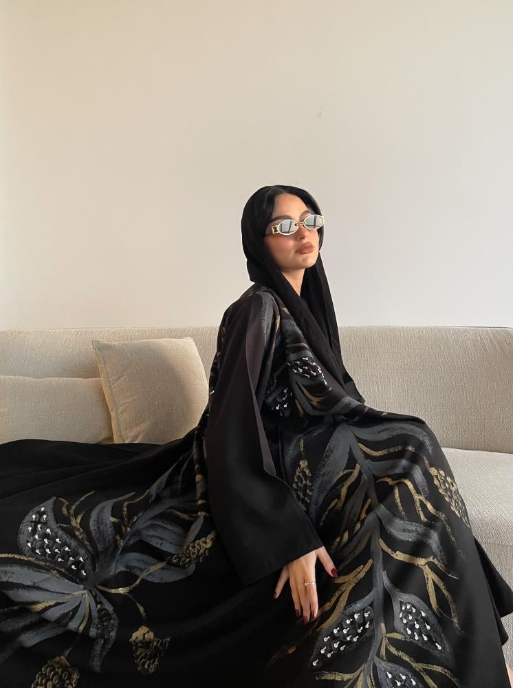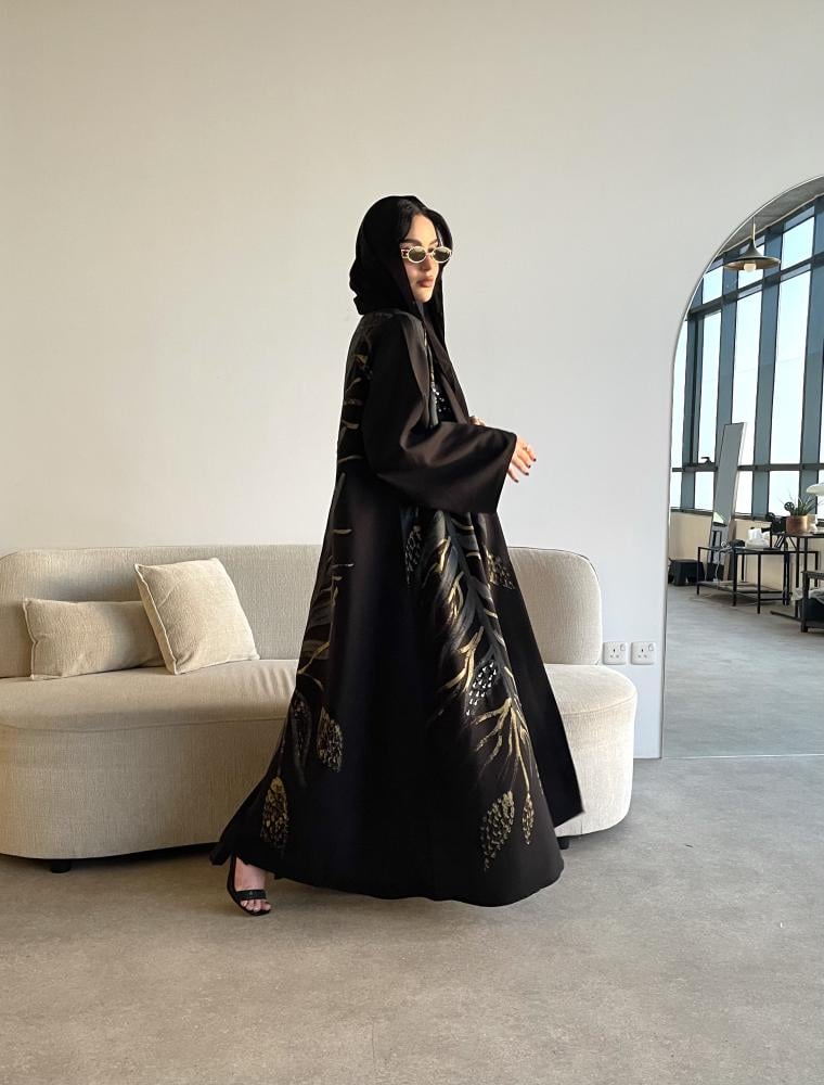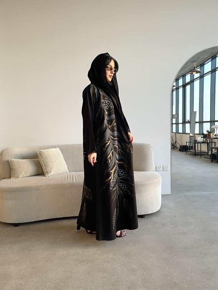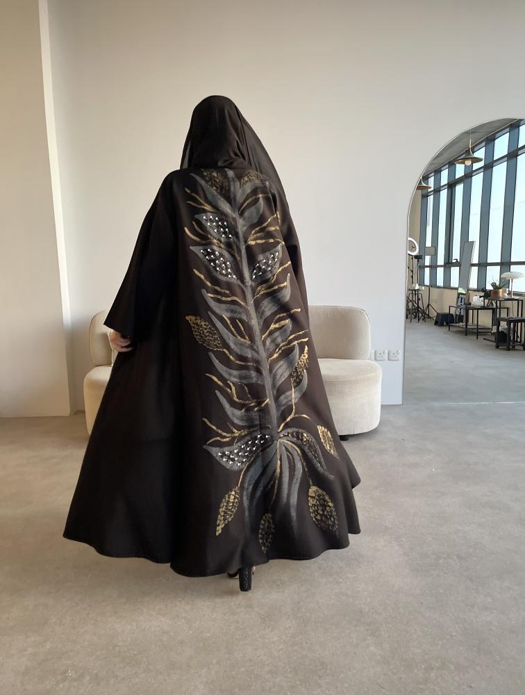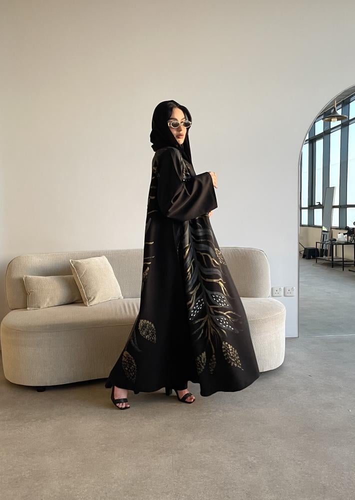Z221 / قماش مخمل اسود مع ياقه ورسم يدوي بالخلف